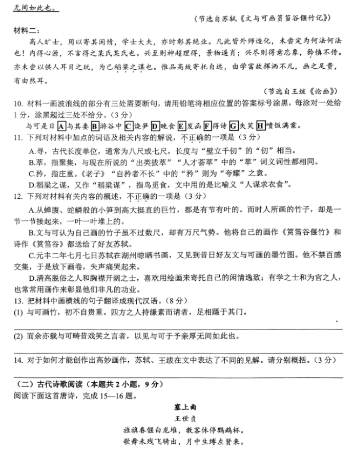 浙江五校联盟2024高三3月联考语文试题及答案解析