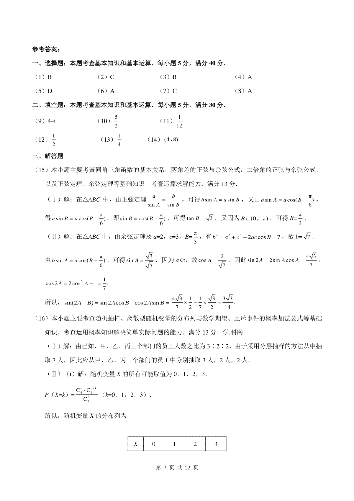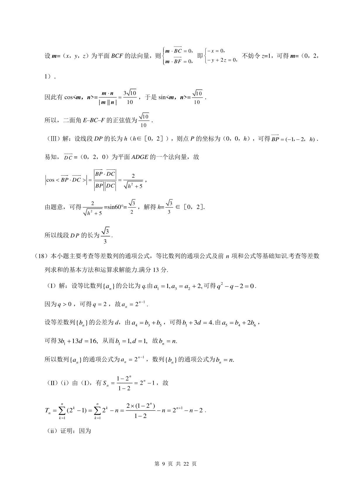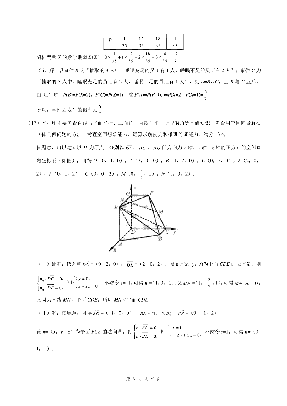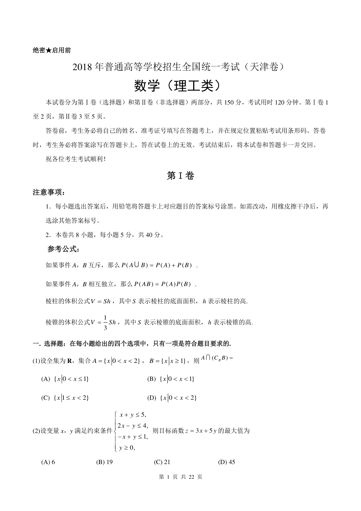 一、2018年高考理科数学试题(天津卷)及参考答案