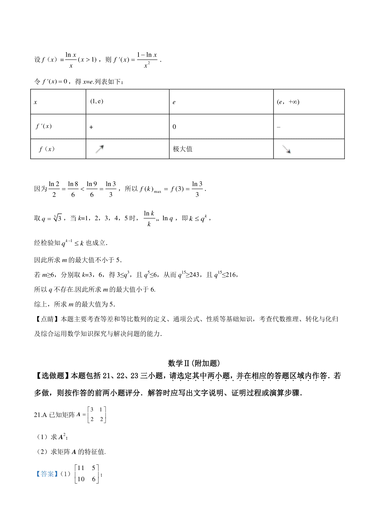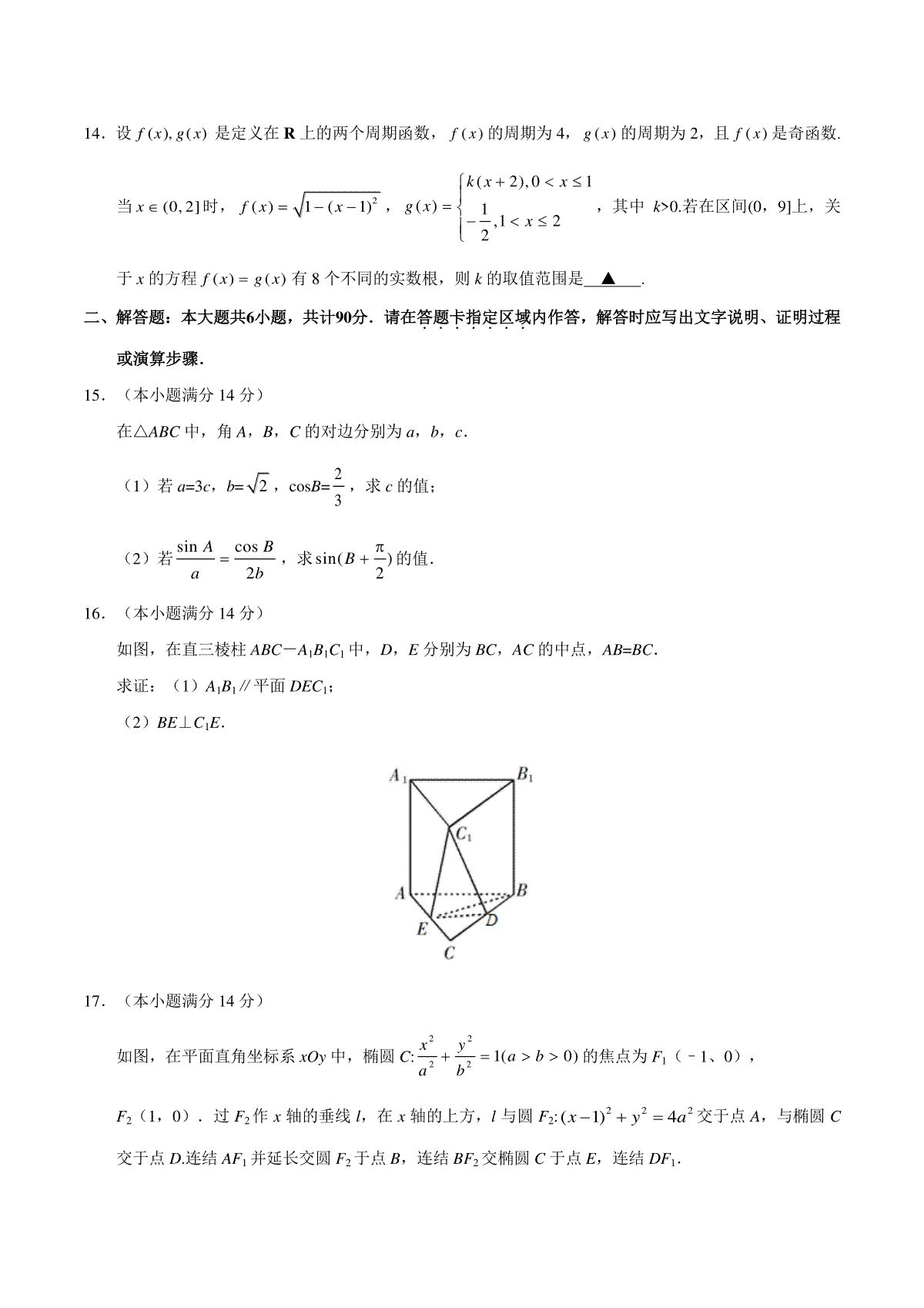 一、2019年江苏高考数学试题及答案