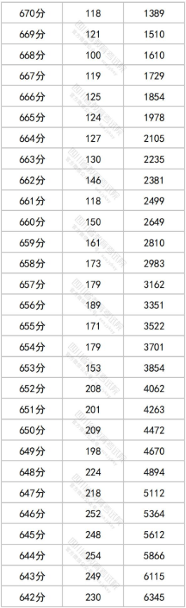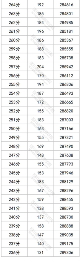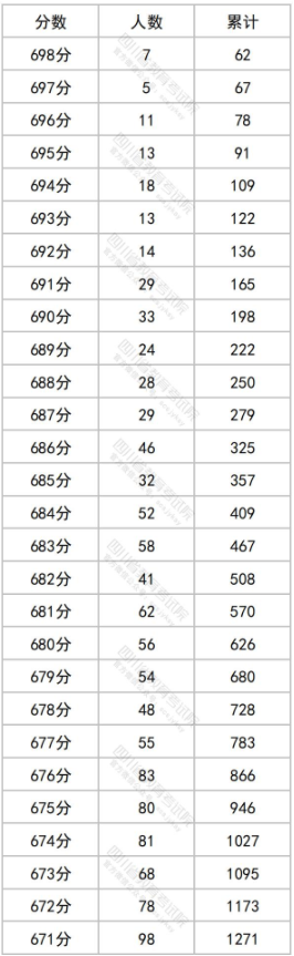 2023四川高考成绩一分一段表【理科】