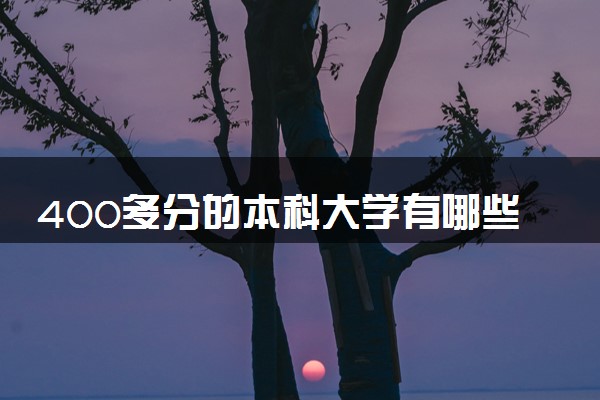 400多分能考上的本科大学有:西南财经大学天府学院、北方民族大学、广州大学华软软件学院、辽宁何氏医学院、大连理工大学城市学院、吕梁学院、黄河科技学院、南昌工学院、大连东软信息学院、齐齐哈尔工程学院。