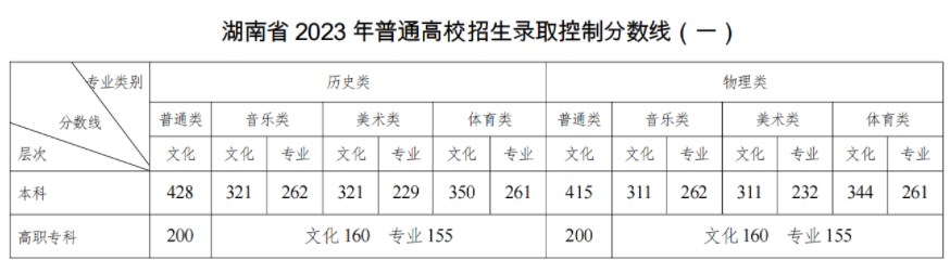 小编整理了2023年湖南高考艺术类分数线供各位考生参考: