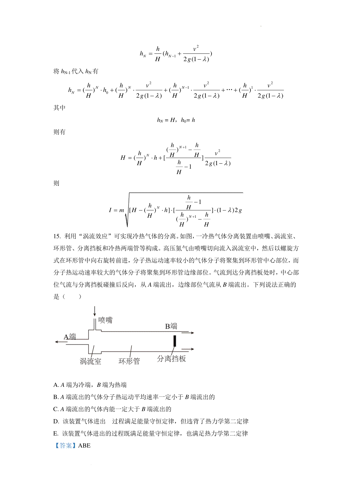 一、精品解析:2022年新高考湖南物理高考真题(解析版)