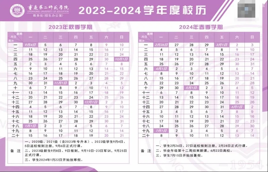 1.2024重庆第二师范学院暑假放假时间什么时候 几月几号开学