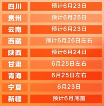 目前,已经有部分省份陆续公布了今年高考的成绩查询时间。吉林、河南、甘肃、海南、湖北、江西、重庆、广东等省份均透露,高考成绩预计将于6月25日左右公布。