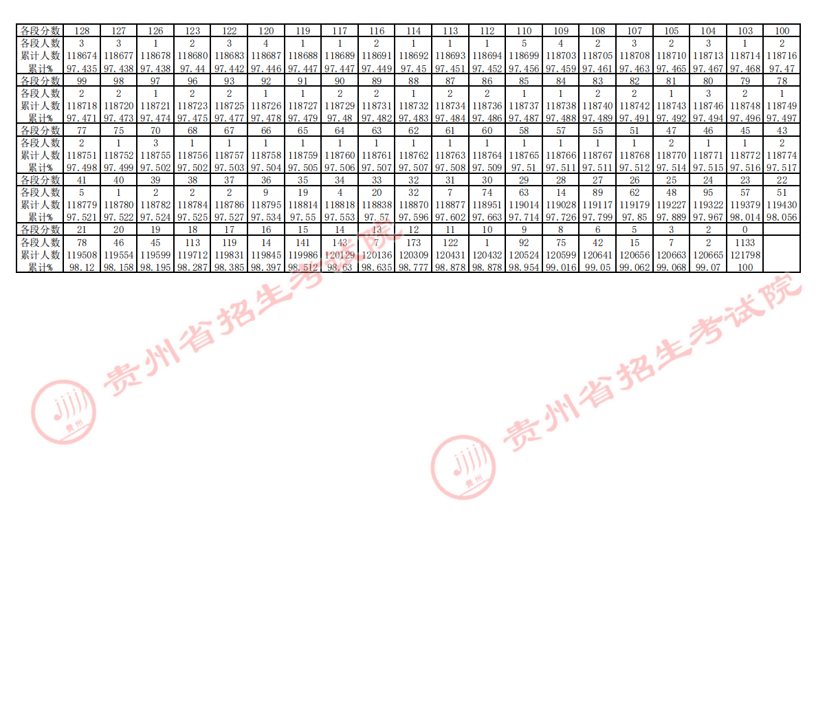 1.2024贵州高考历史类一分一段表公布 分数位次对照表最新
