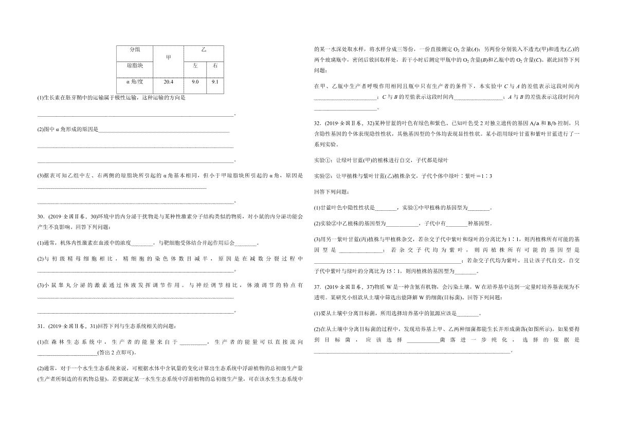 一、2019年全国统一高考生物试卷(新课标ⅱ)(原卷版)