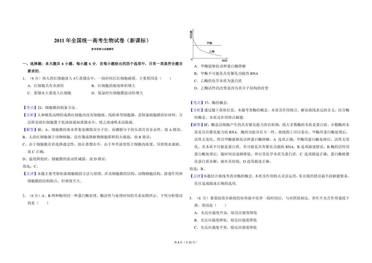 一、2011年全国统一高考生物试卷(新课标)(含解析版)
