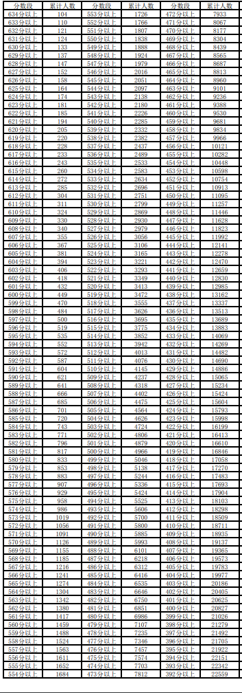 2024宁夏高考文科一分一段表: