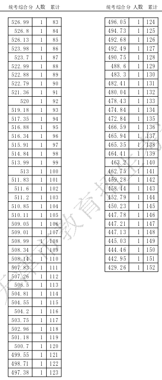 音乐类(音乐教育)综合分分数段情况(含政策加分)