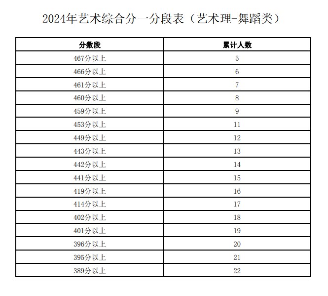 2024年艺术综合分一分段表(艺术理-舞蹈类):