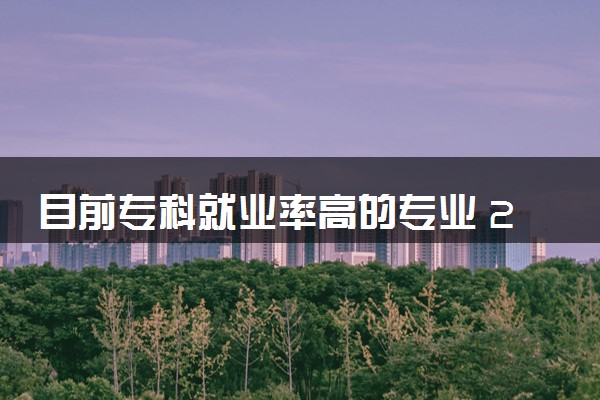 目前专科就业率高的专业:铁道工程技术专业、医学美容技术专业、汽车服务专业、康复治疗学专业、电气工程及其自动化专业、医药专业、园林技术专业、计算机科学与技术专业、焊接技术及自动化专业、外贸专业、城市轨道交通工程技术专业、畜牧兽医专业、交通运营管理专业等。