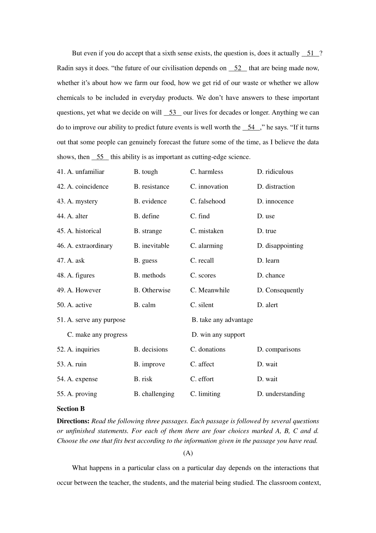 2017年上海高考春季英语真题试卷(word原卷版)于近期开考,本次考试对考生对知识的掌握参考价值大,为了方便大家复习掌握错题!小编在下文为大家准备了2017年上海高考春季英语真题试卷(word原卷版)试卷及答案解析详情,仅供考生参考。