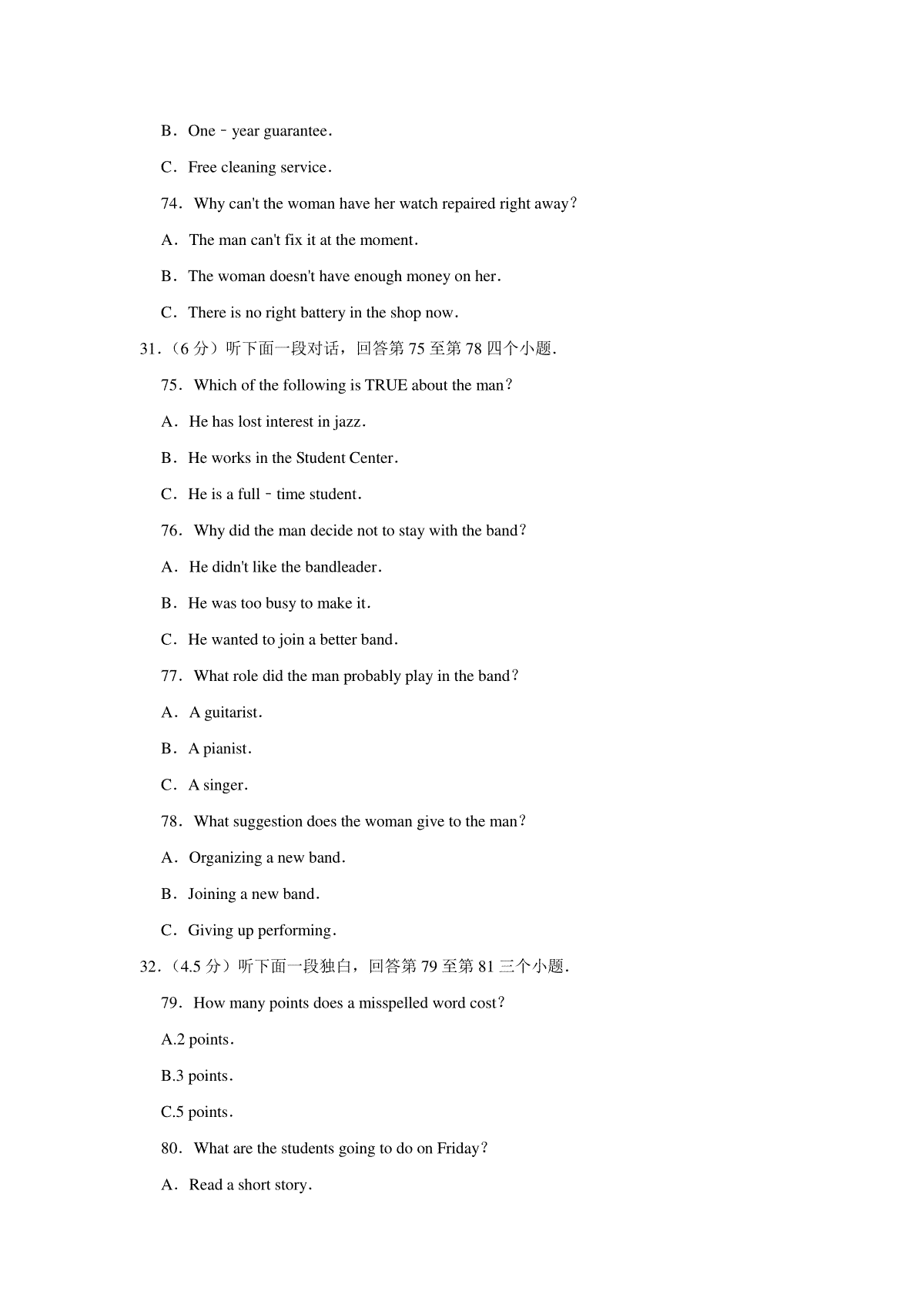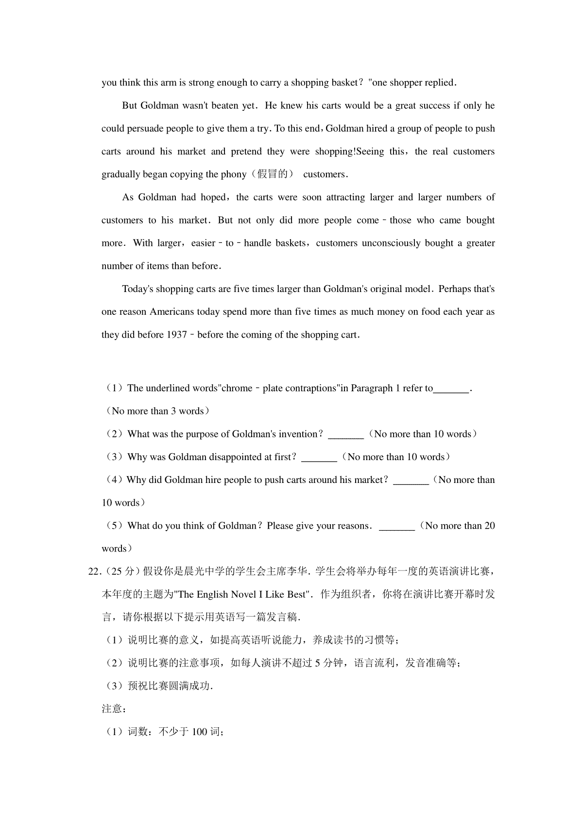 如果你想下载2009年天津市高考英语试卷 DOC或PDF版,请点击本文末链接!