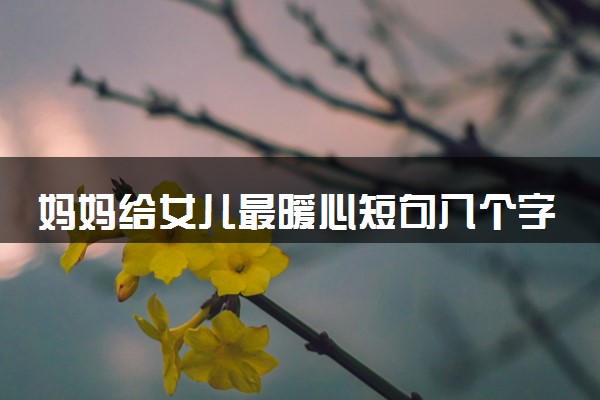 给女儿的8字暖心寄语:1.心中有爱, 眼里有光2.勇敢前行, 无惧风浪3.心中有爱, 眼里有光4.心中有爱, 眼中有光5.勇敢前行, 无畏无惧6.世界纷扰, 有你便好7.安然相伴, 暖心如你8.世界纷扰, 你是我宝9.有你足矣, 暖心相伴。