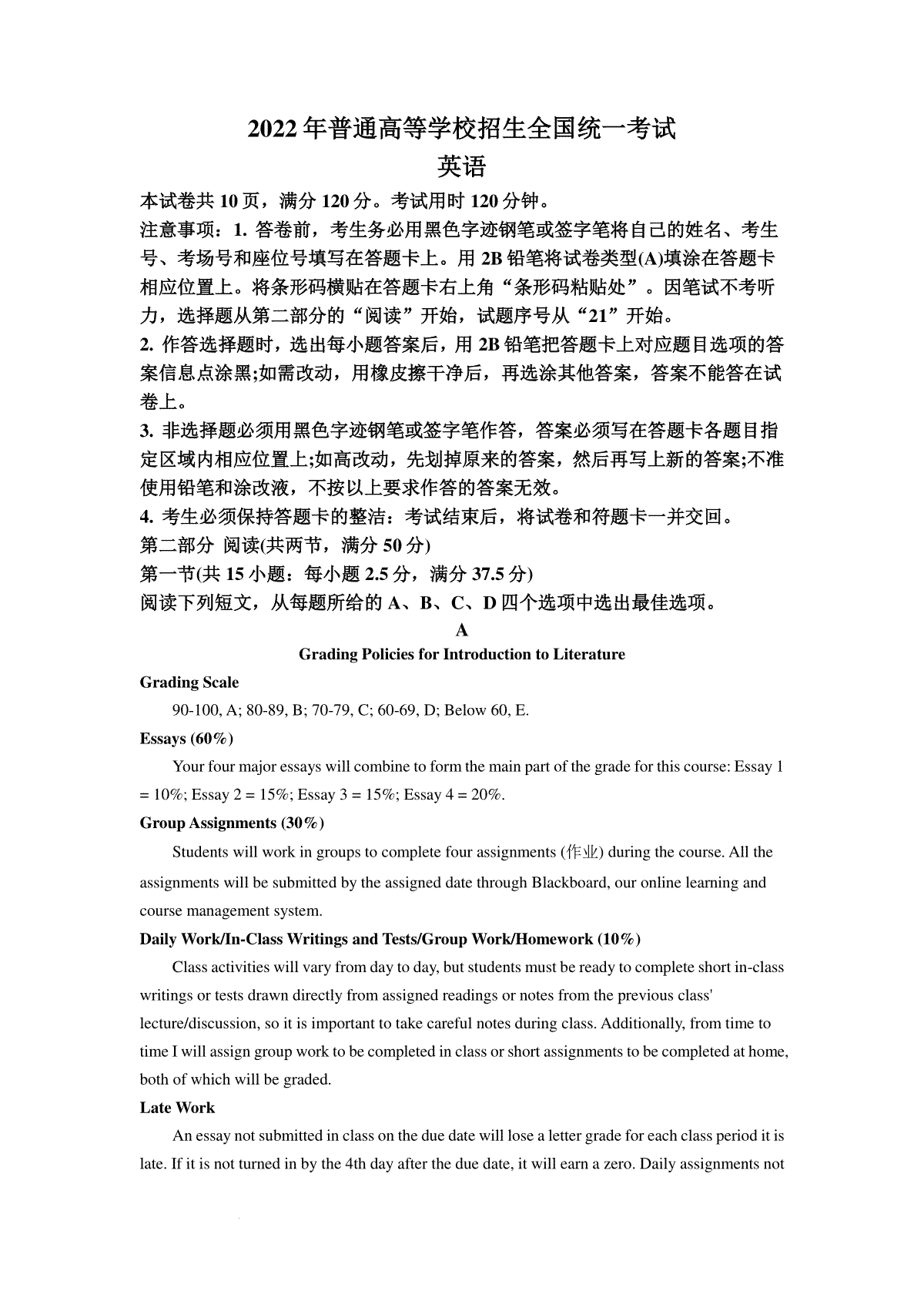 如果你想下载精品解析:2022年新高考全国一卷英语真题(原卷版)DOC或PDF版,请点击本文末链接!