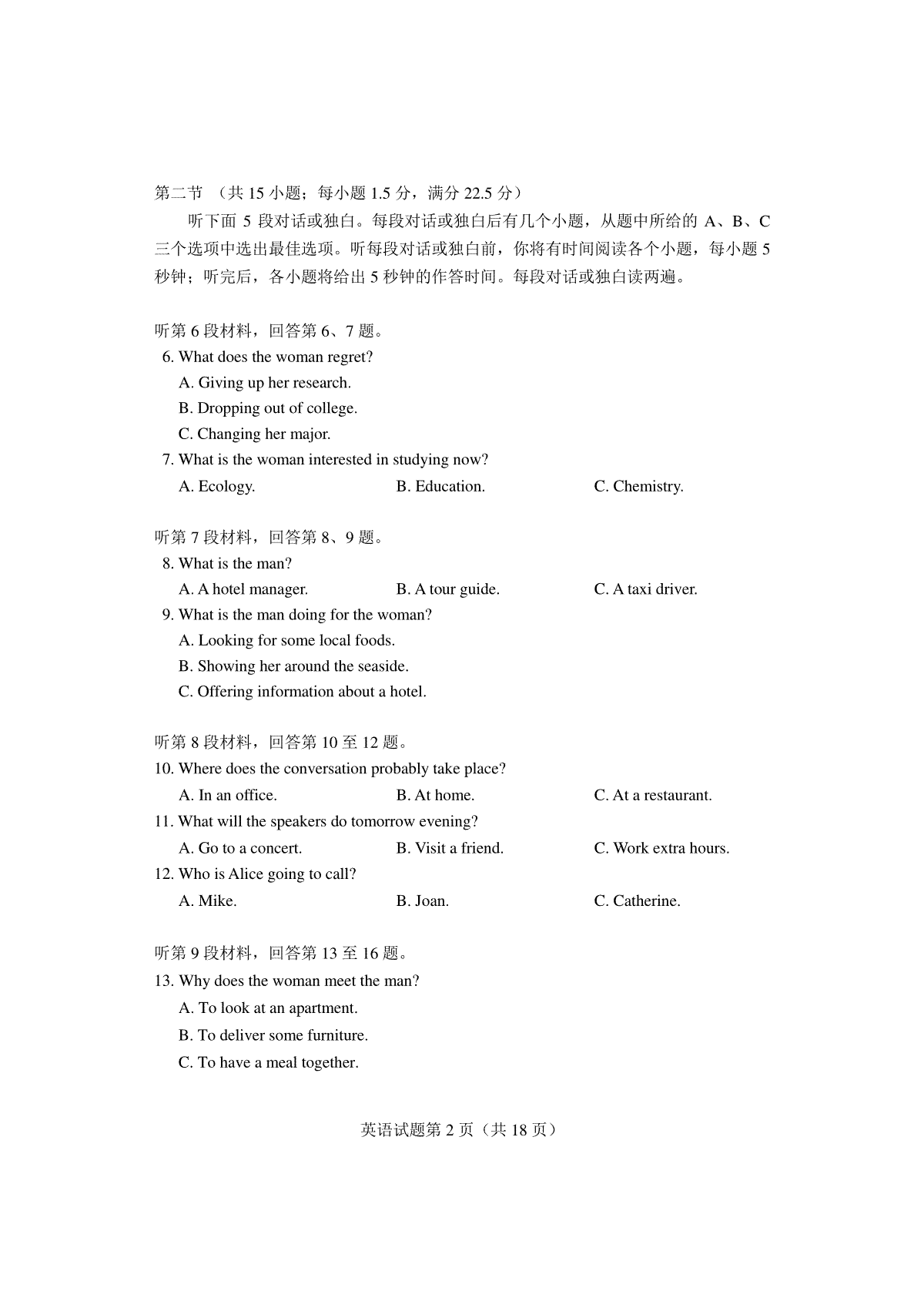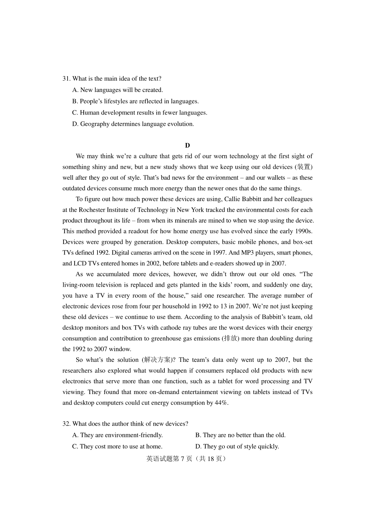 如果你想下载2018年福建高考英语试题及答案DOC或PDF版,请点击本文末链接!