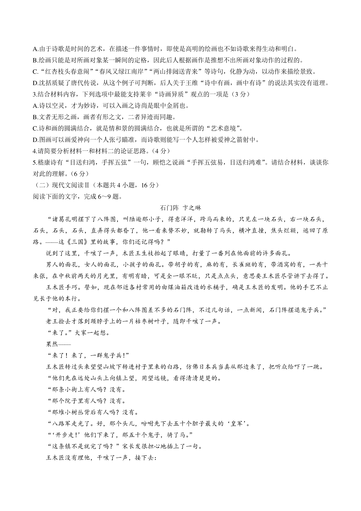 一、2021年高考真题 语文(山东卷)(原卷版)
