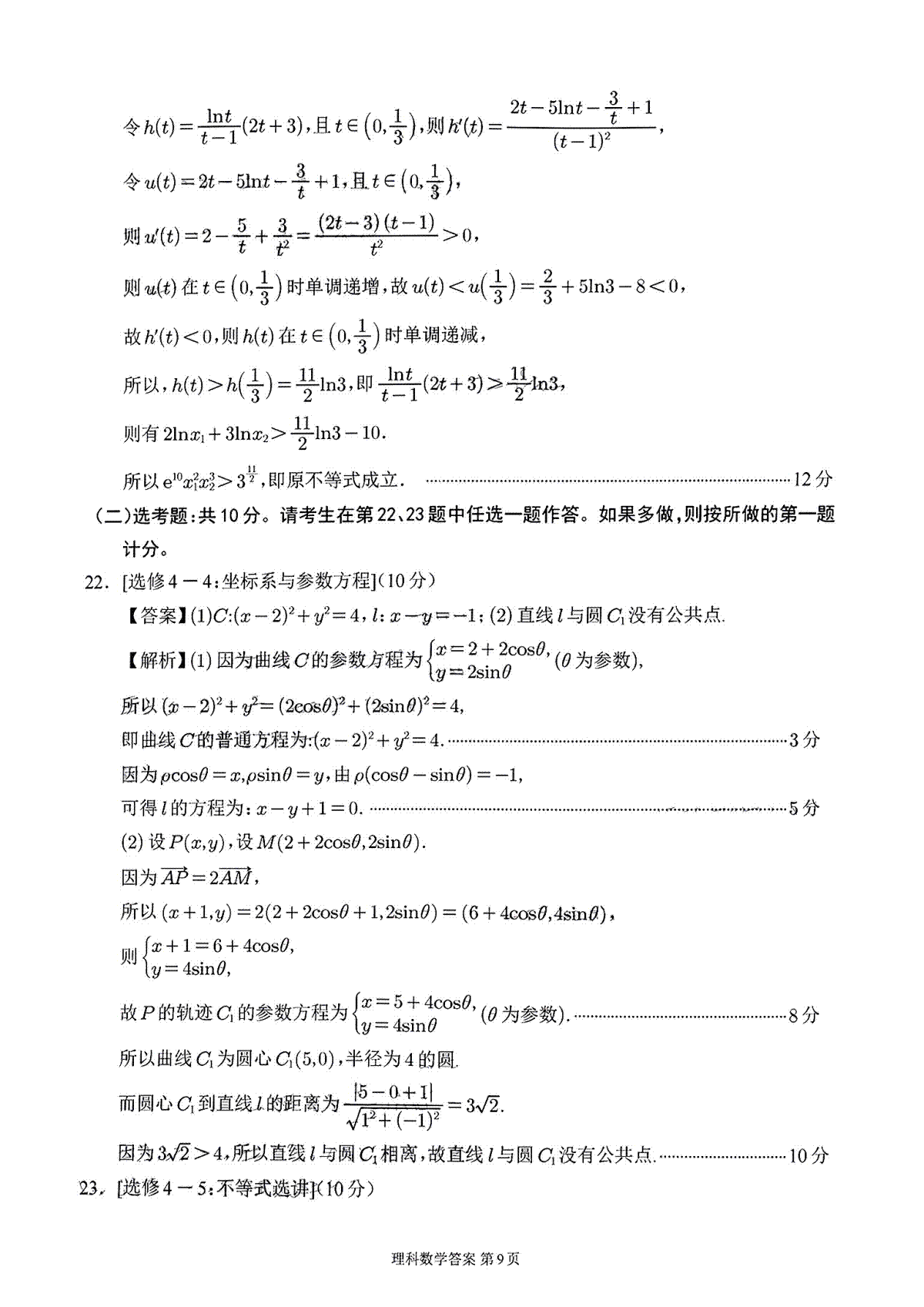 一、四川省大数据精准教学联盟2020 级高三第一次统一监测理数答案
