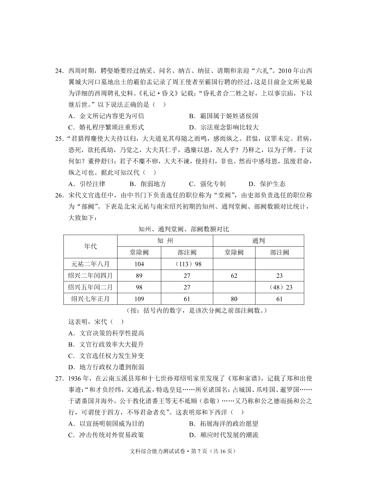 2.专题06 统一多民族国家的巩固与发展(第01期)-2019年中考真题历史试题分项汇编(原卷版)