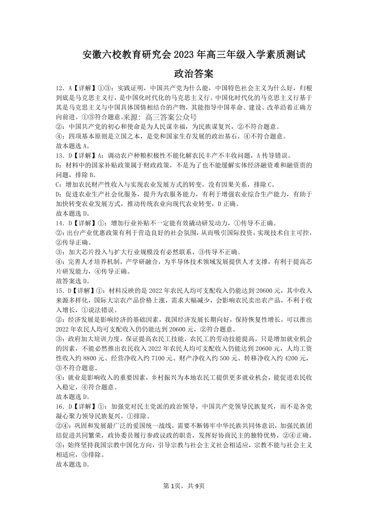 如果你想下载安徽省六校教育研究会 2023 年高三年级入学素质测试六校联考文综答案DOC或PDF版,请点击本文末链接!