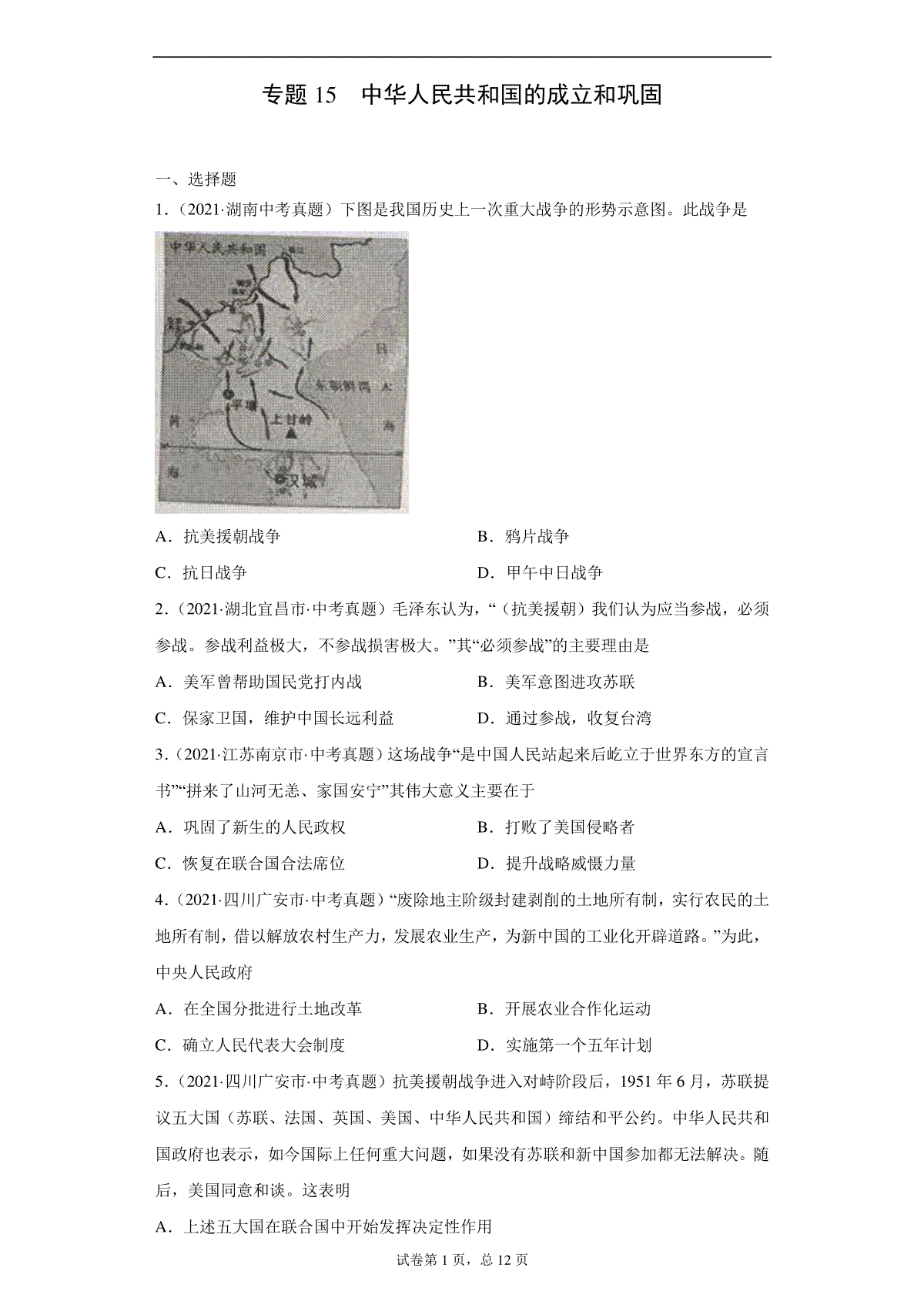 2.专题27 第一次世界大战和战后初期的世界(第01期)-2020年中考历史真题分项汇编(原卷版)