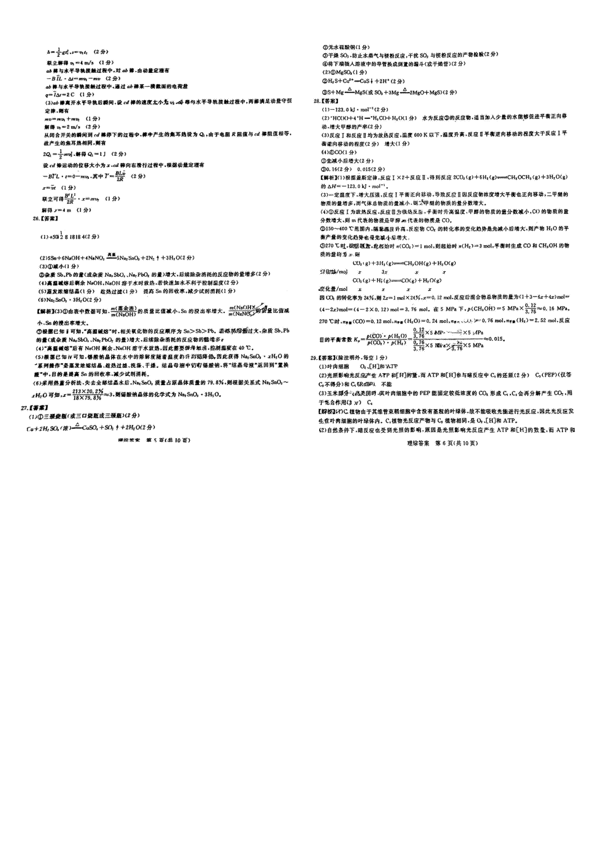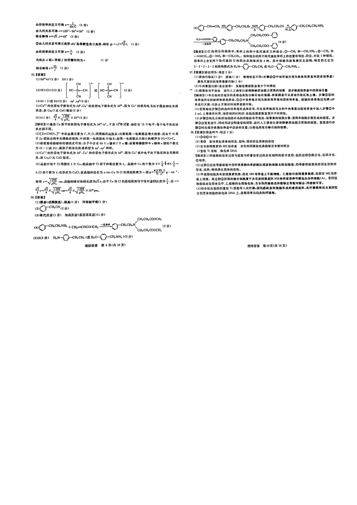 一、2023年新未来3月理综答案
