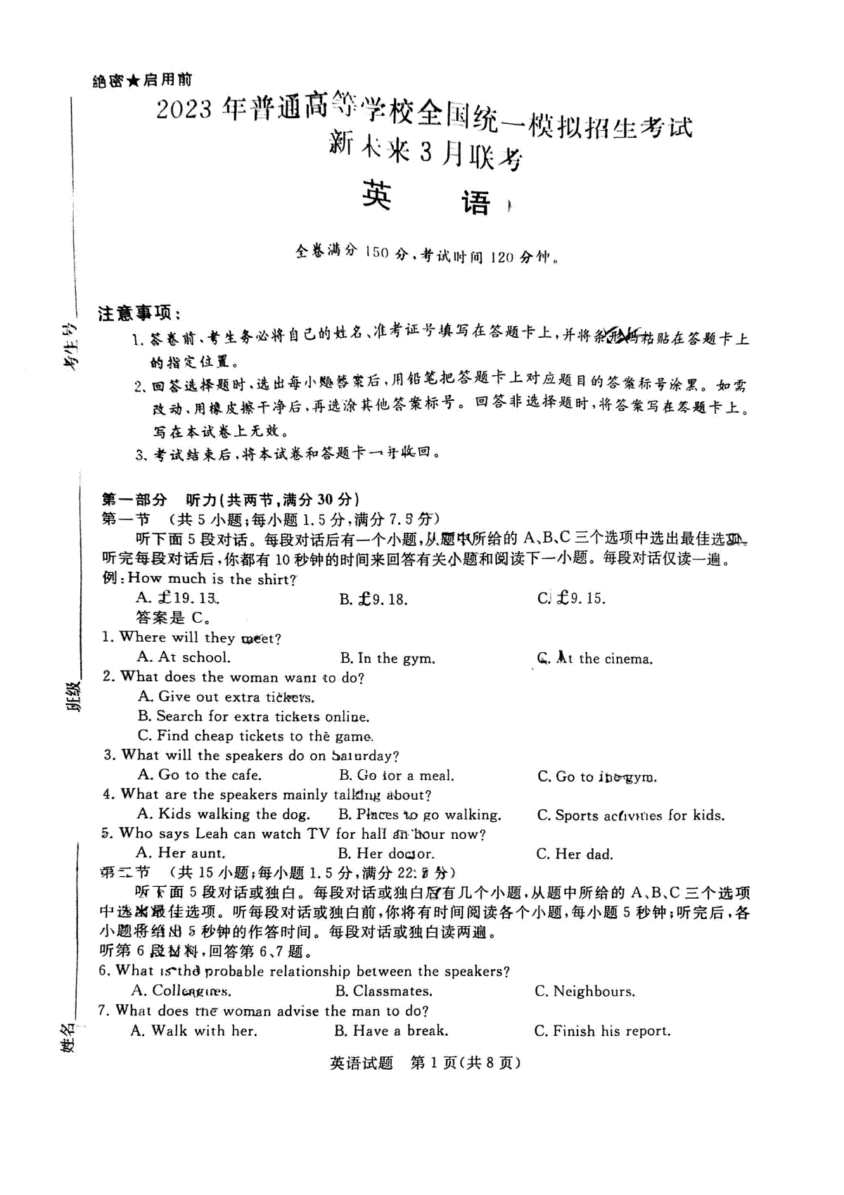 如果你想下载2023年新未来3月英语试卷DOC或PDF版,请点击本文末链接!