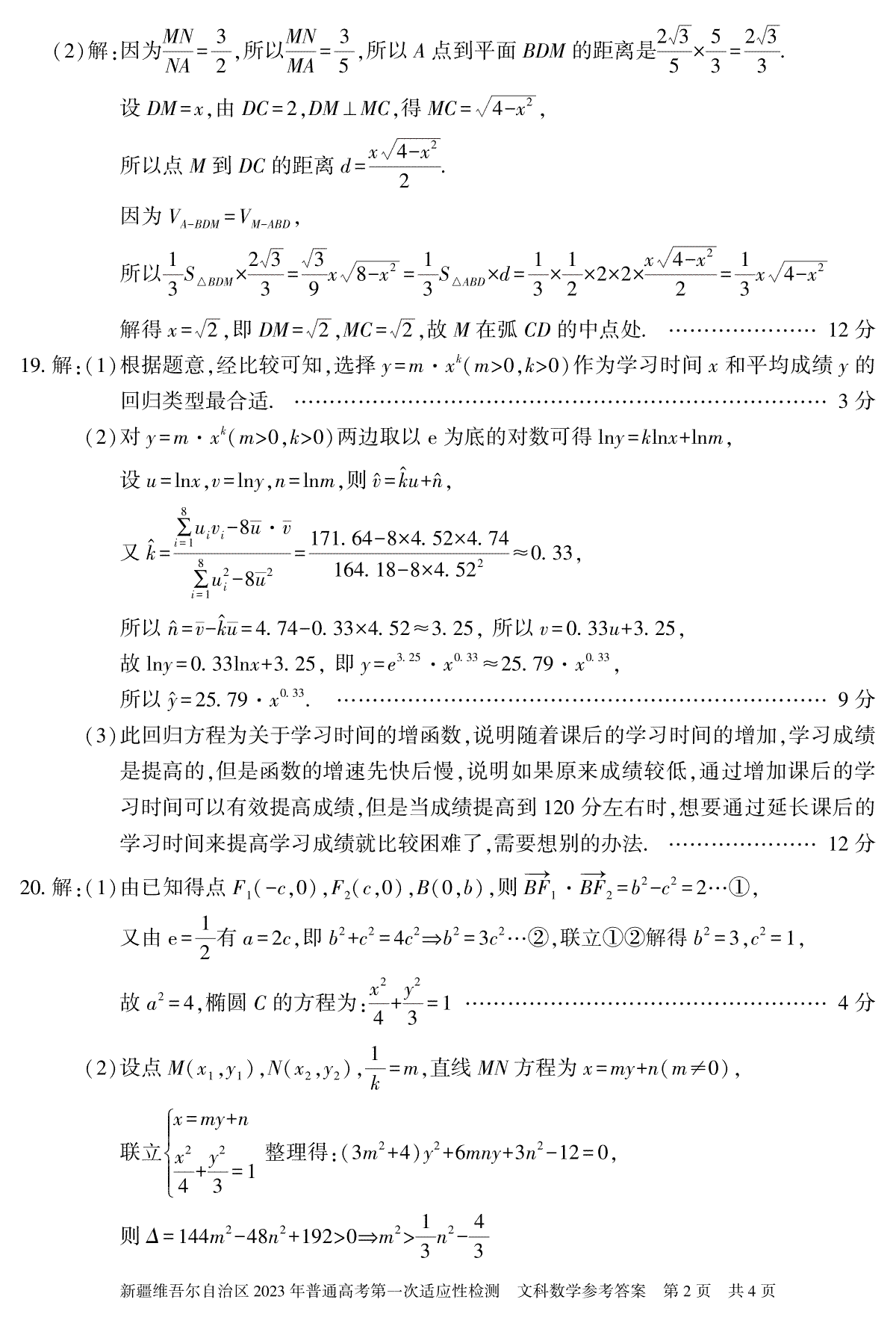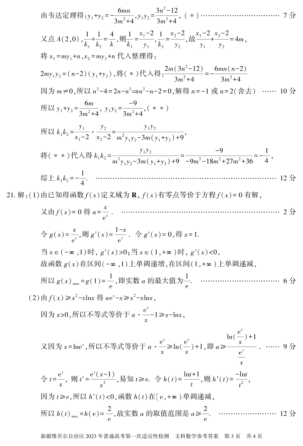 一、2023新疆一模高三文科数学 答案 23年自治区适应性检测第一次