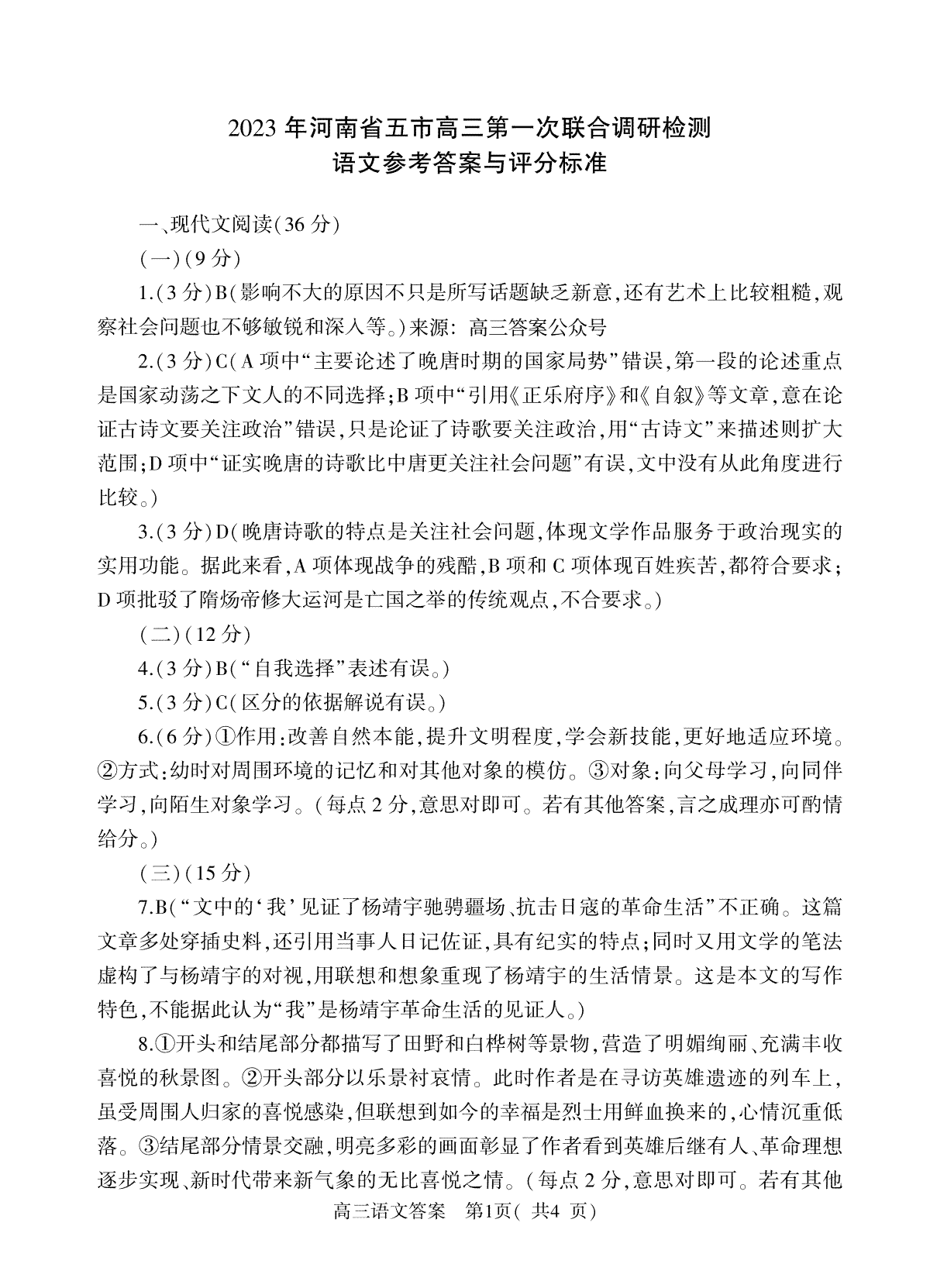 如果你想下载2023年河南五市高三第一次联考语文答案DOC或PDF版,请点击本文末链接!