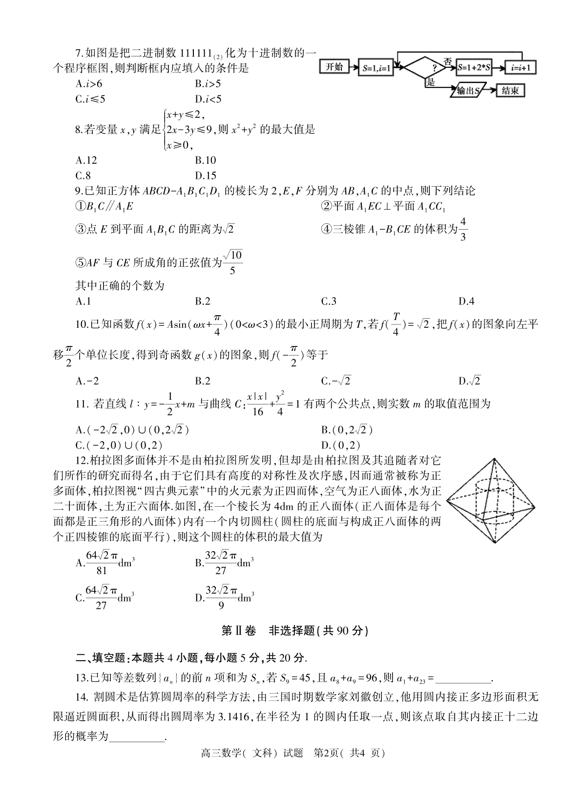 一、2023年河南省五市高三第一次联合调研检测数学(文)