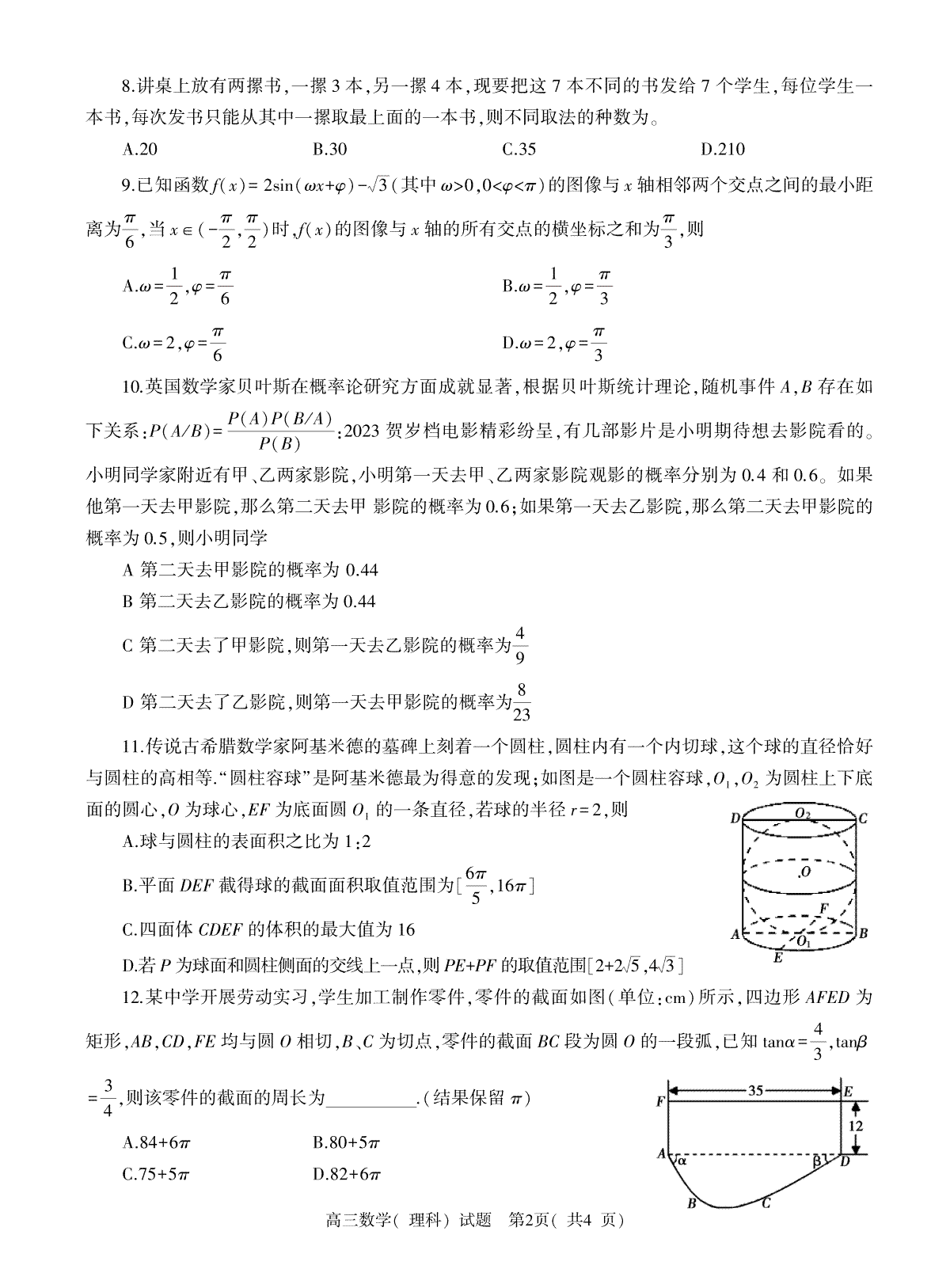 一、2023年河南省五市高三第一次联合调研检测数学(理)