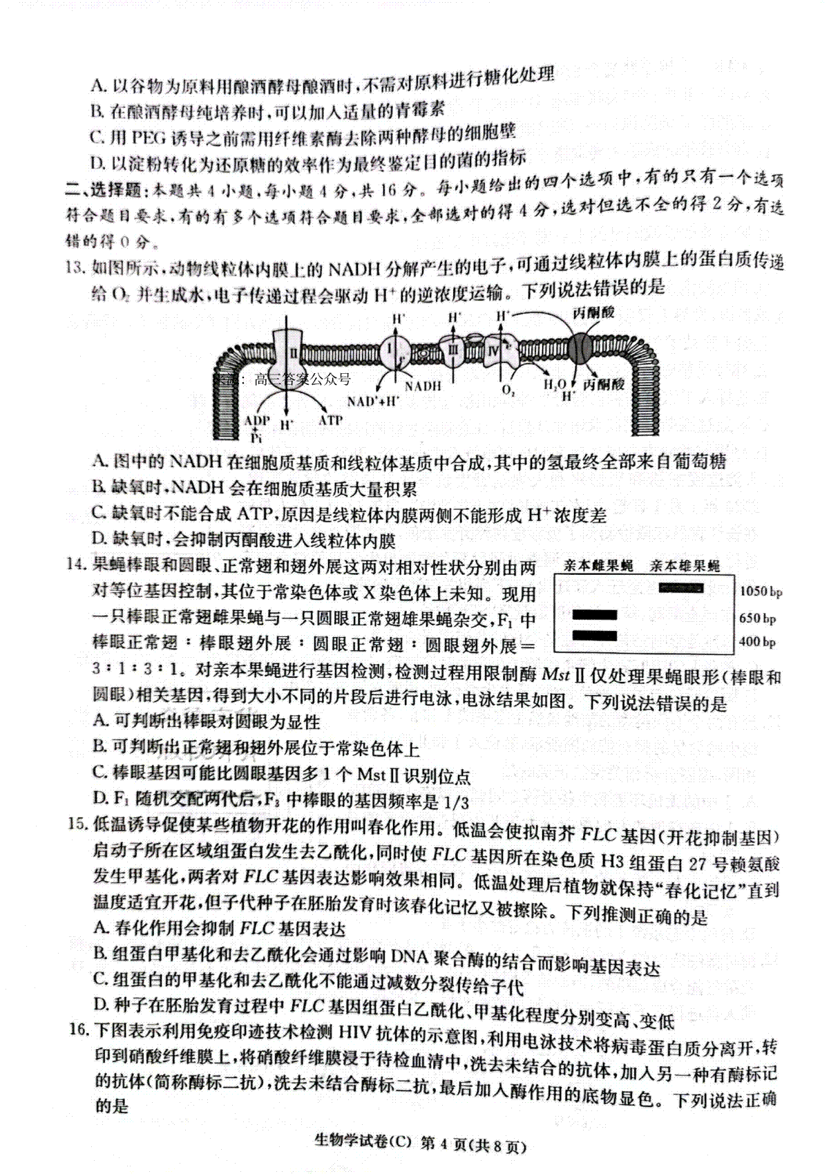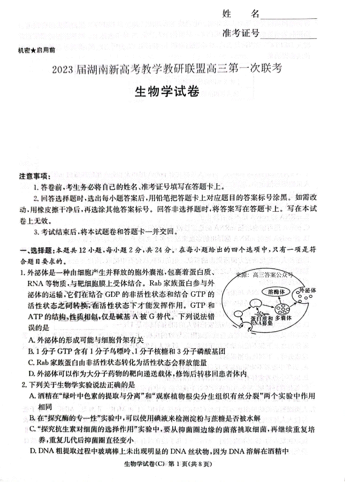 如果你想下载2023届湖南新高考教学教研联盟高三第一次联考生物DOC或PDF版,请点击本文末链接!