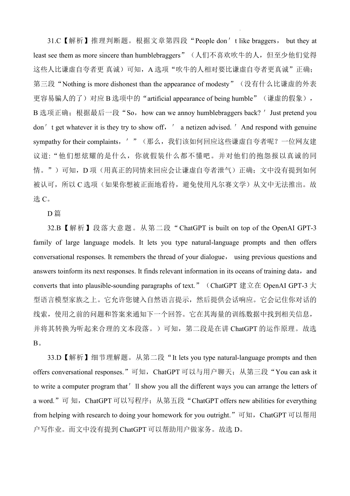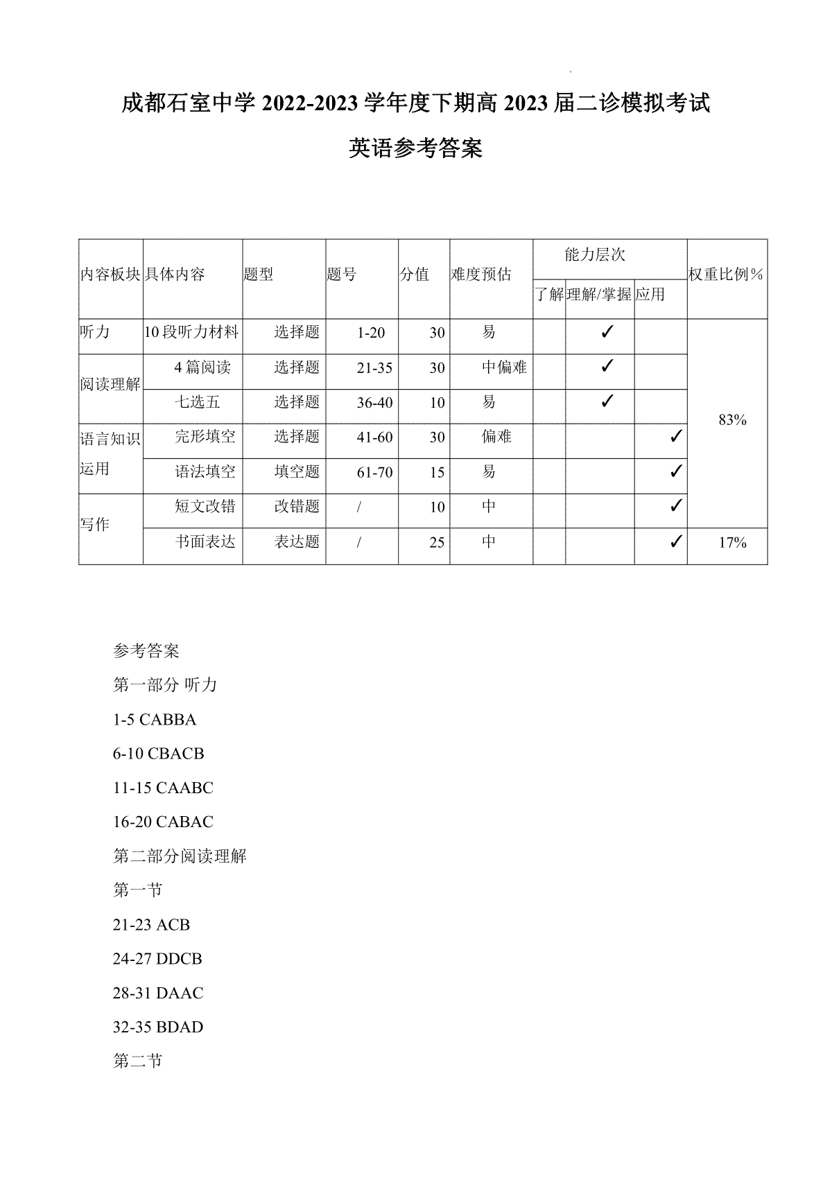 如果你想下载四川省成都市石室中学2022-2023学年高三下学期二诊模拟考试英语答案普通解析DOC或PDF版,请点击本文末链接!
