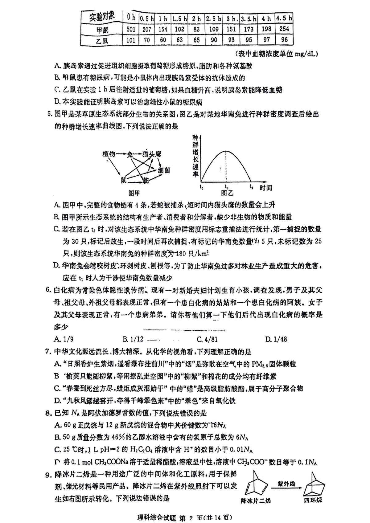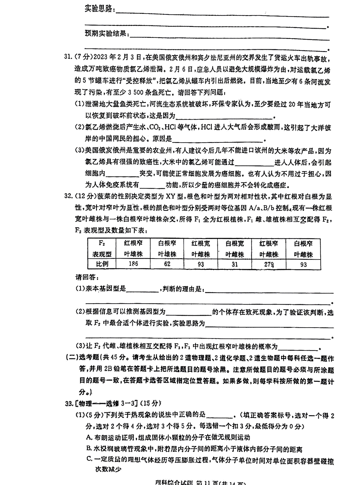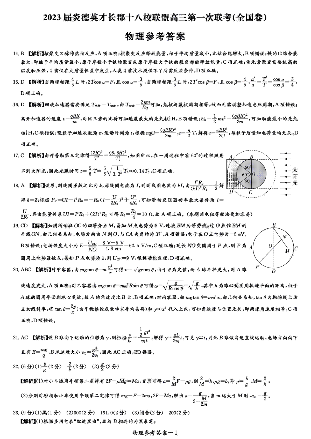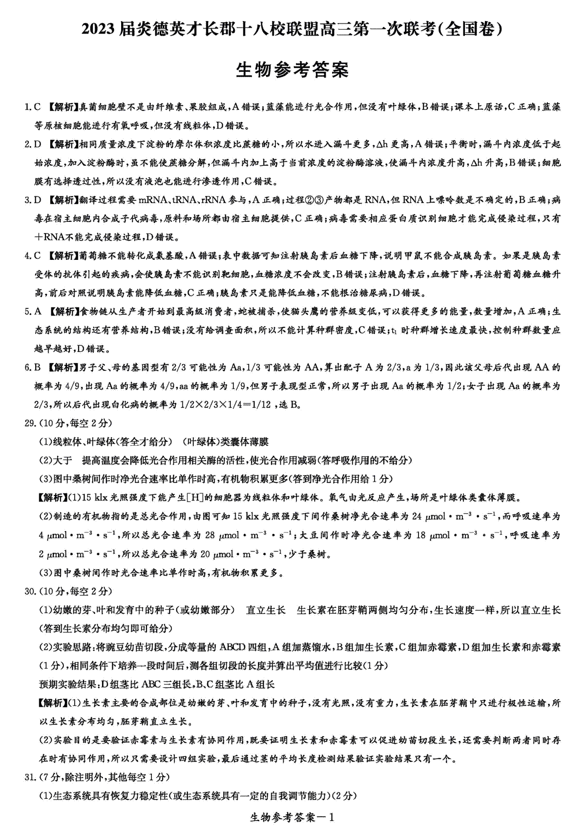一、2023届炎德英才长郡十八校联盟高三第一次联考全国卷理综