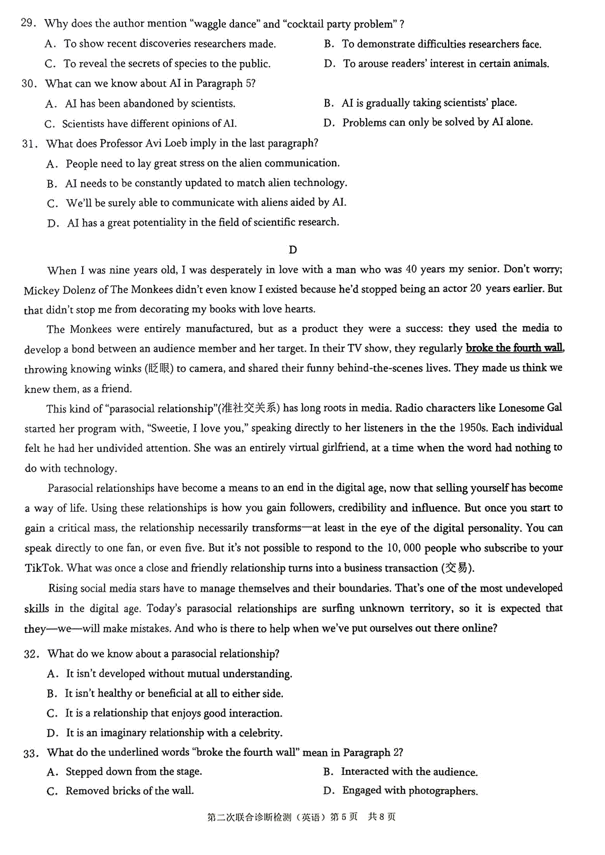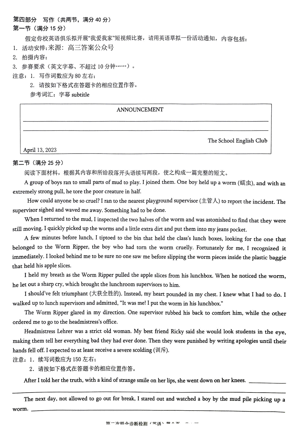 2023重庆二诊(新高考)英语于近期开考,本次考试对考生对知识的掌握参考价值大,为了方便大家复习掌握错题!小编在下文为大家准备了2023重庆二诊(新高考)英语试卷及答案解析详情,仅供考生参考。
