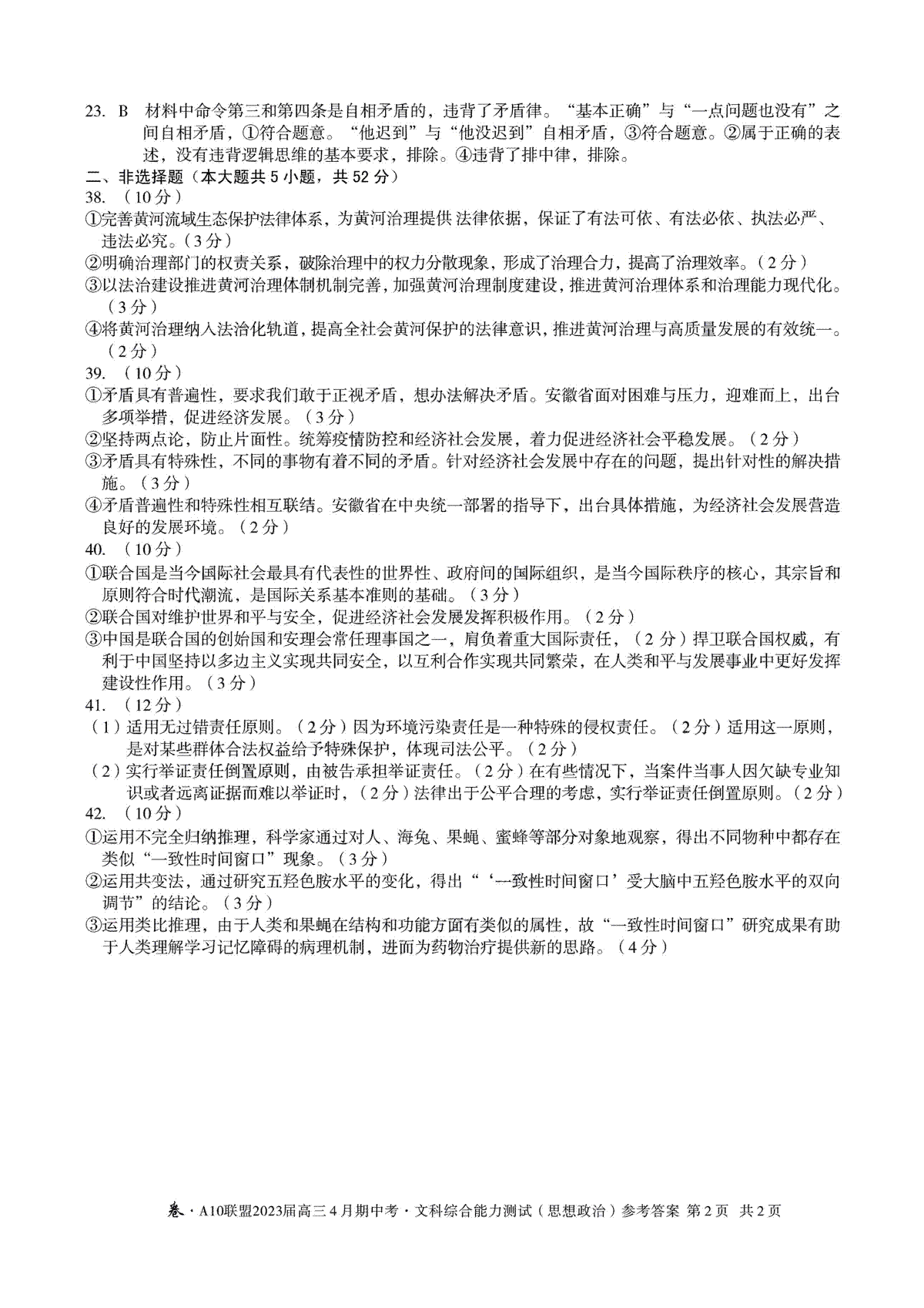 如果你想下载安徽A10联盟2023届高三4月联考文综答案DOC或PDF版,请点击本文末链接!