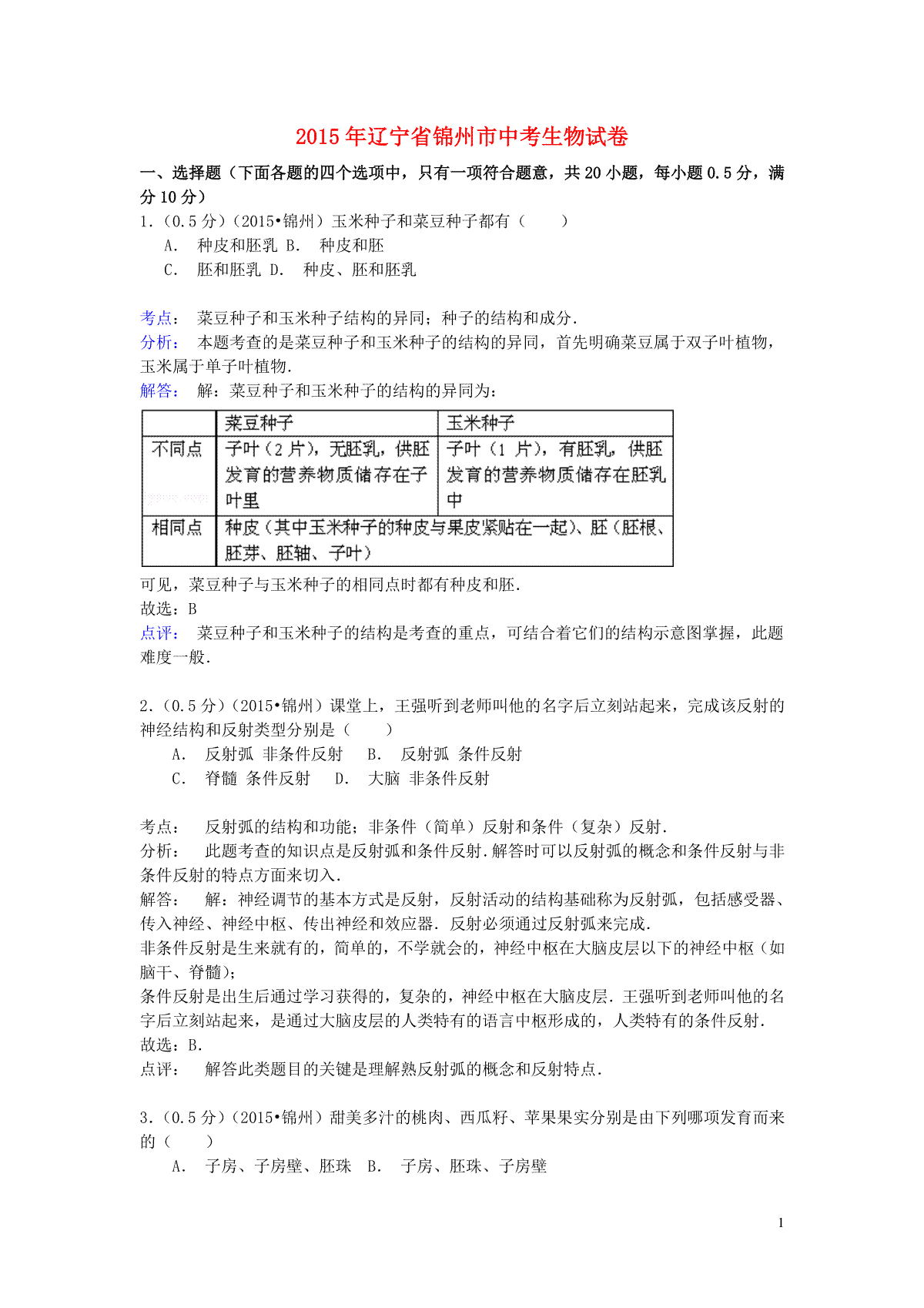 4.福建省福州市2015年中考生物真题试题(扫描版,含答案)