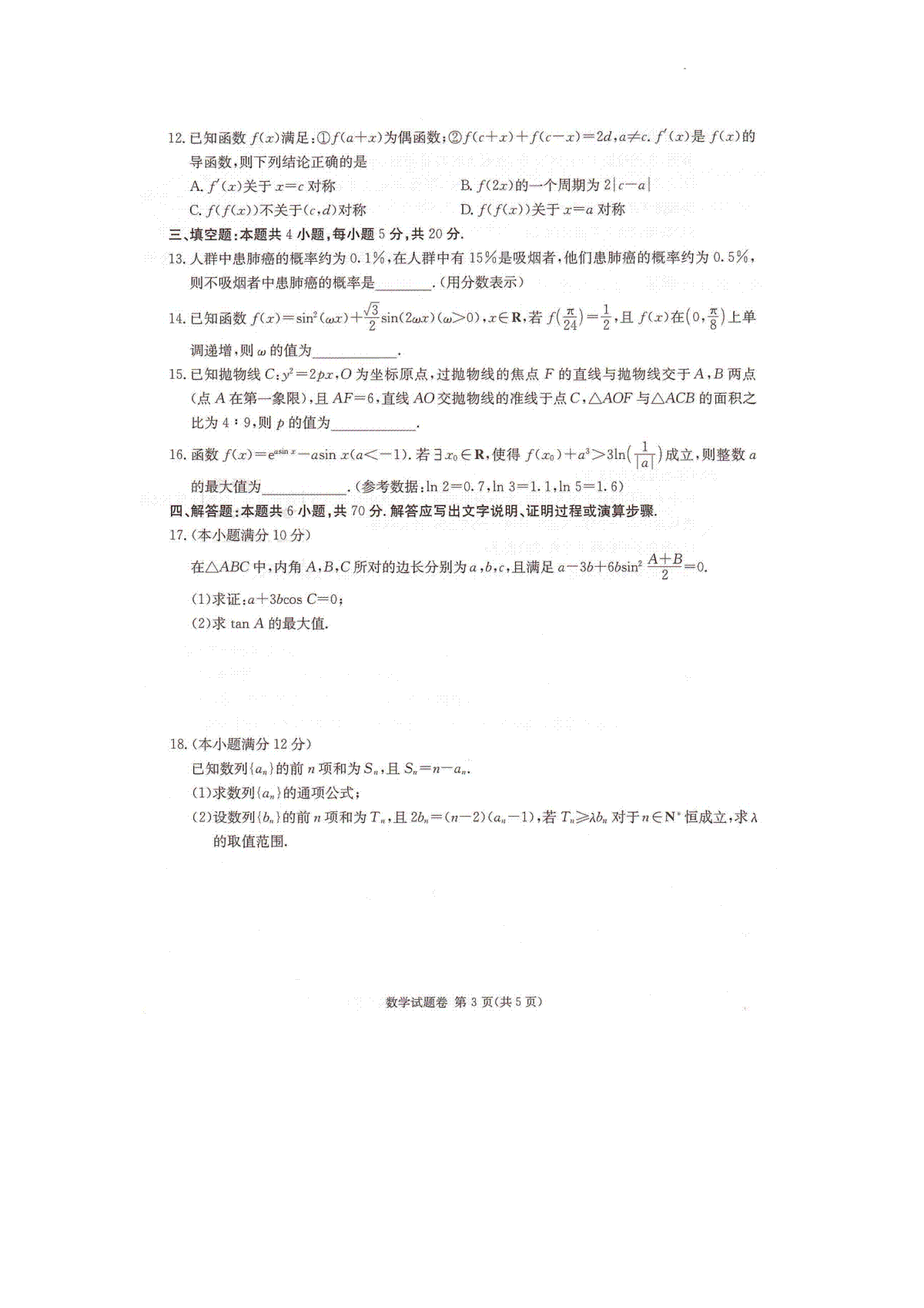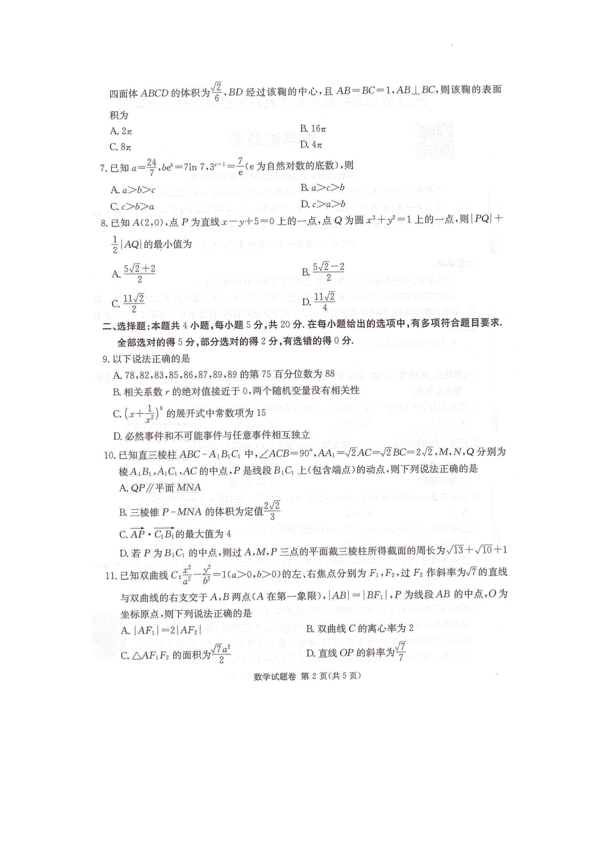 一、2023届湖南省教学教研联盟高三第二次联考数学试题图片版