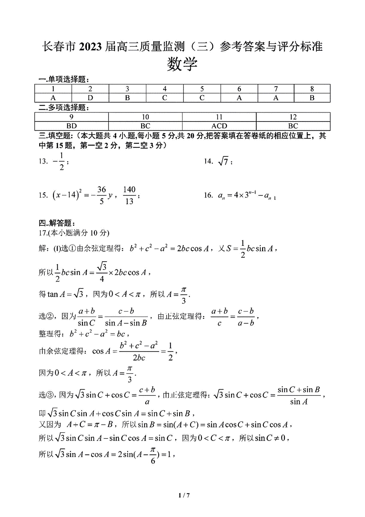 如果你想下载2023吉林长春三模数学DOC或PDF版,请点击本文末链接!