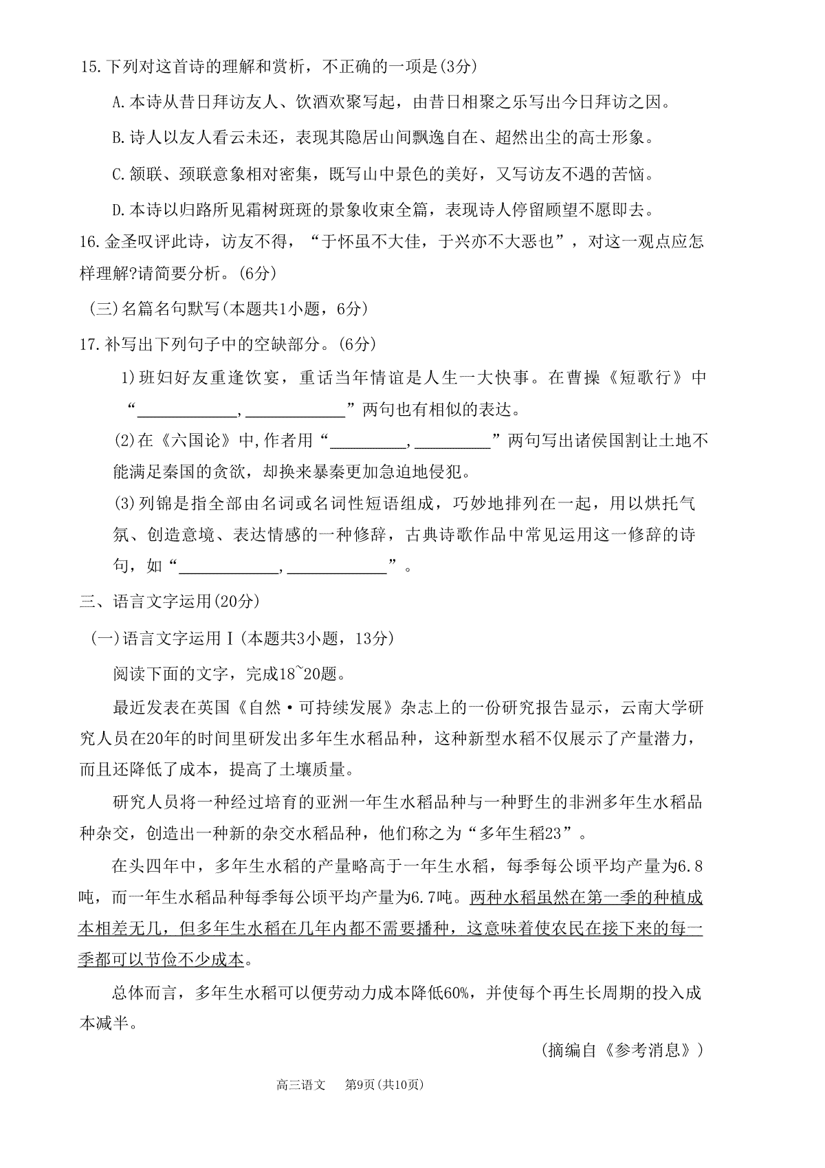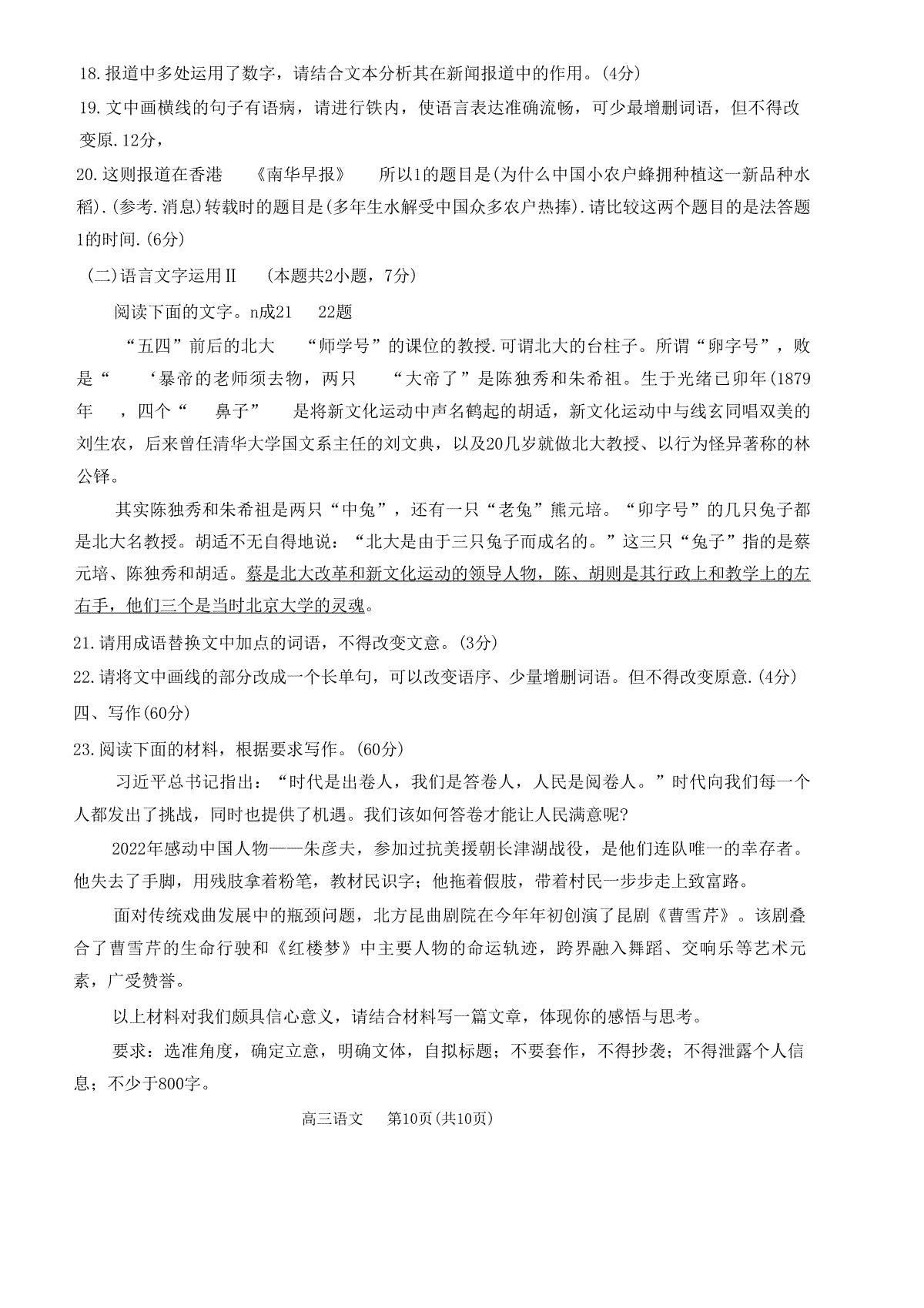 一、2023沈阳二模(新高考)语文