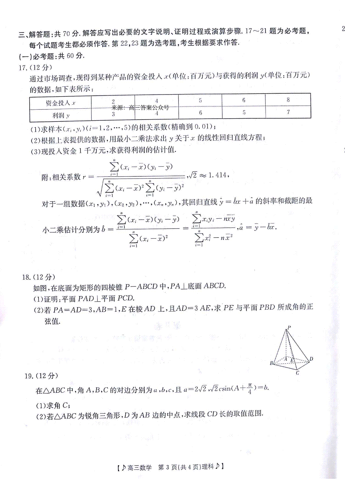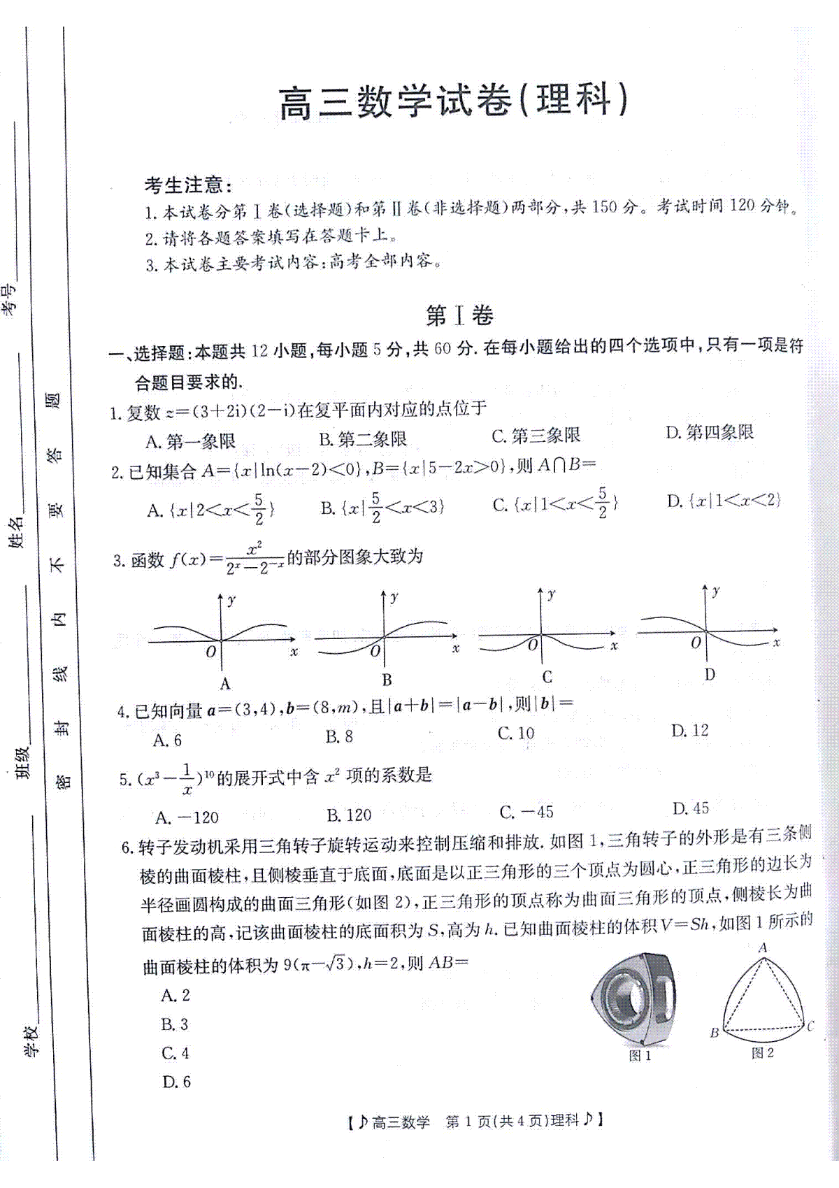 一、2023甘肃4月(老高考)理数