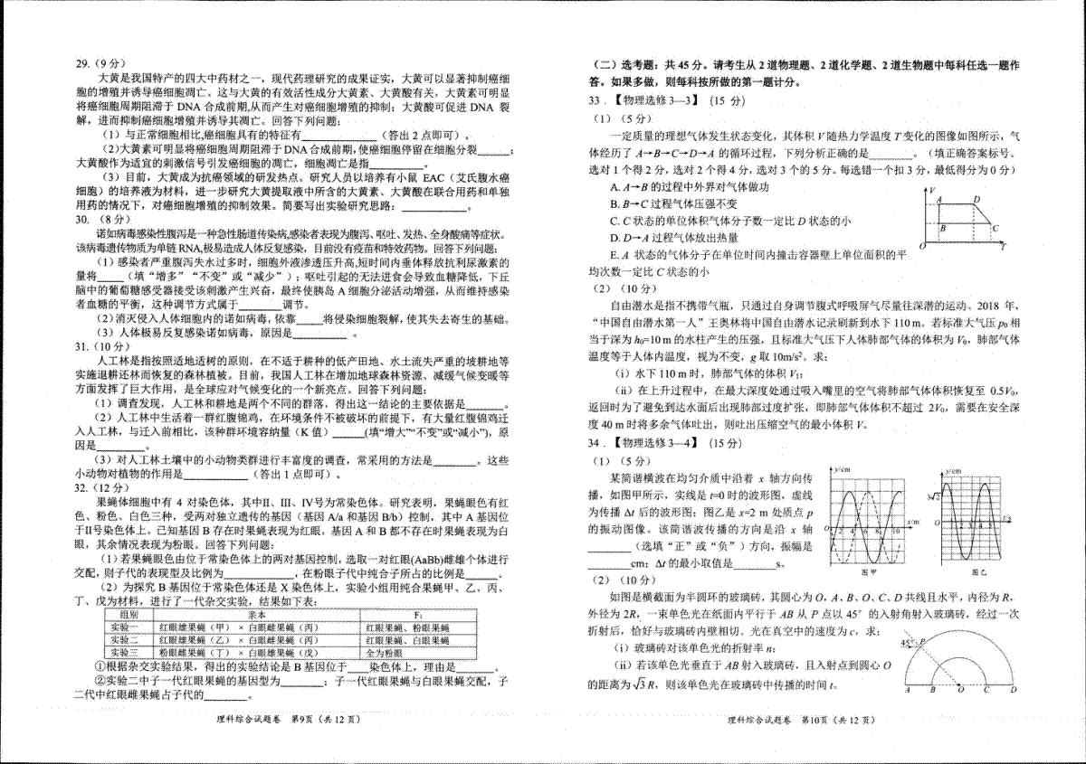 一、2023四川绵阳三诊理综