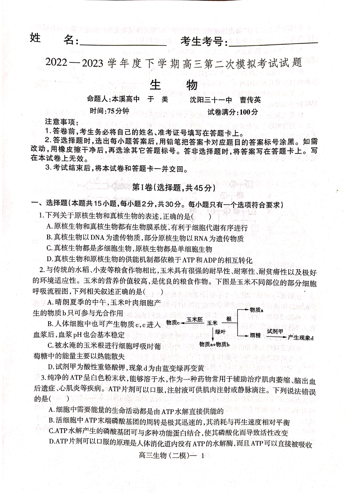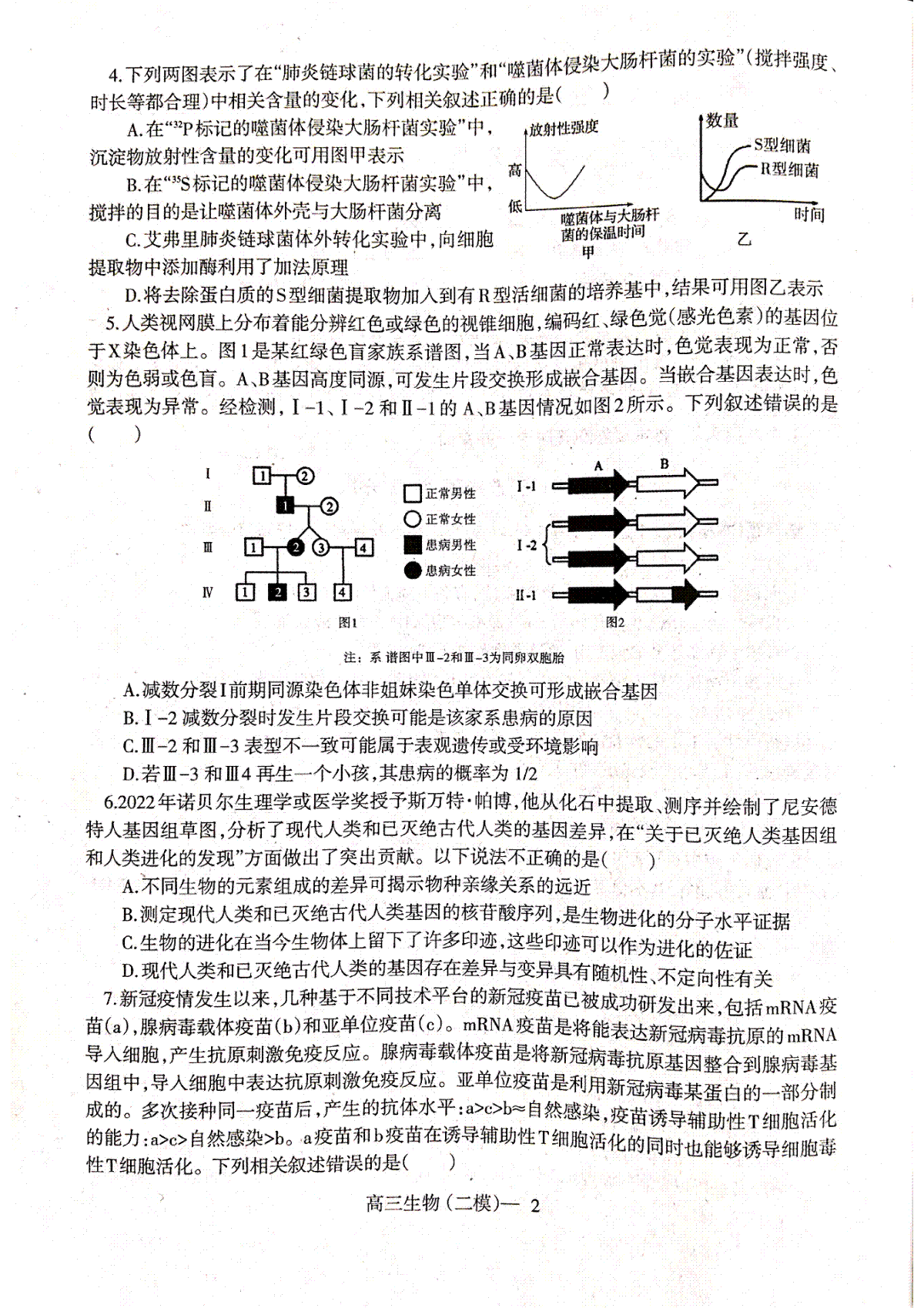 一、2023辽宁协作校二模(新高考)高三生物