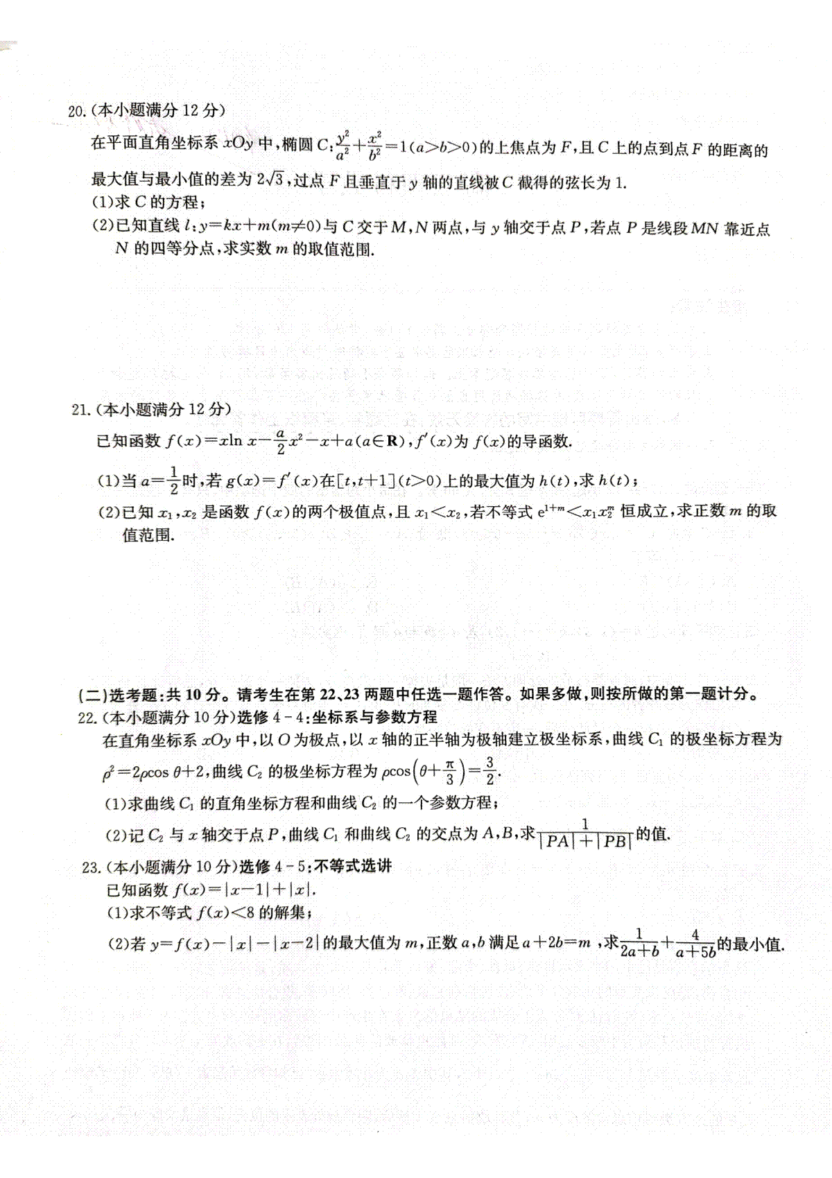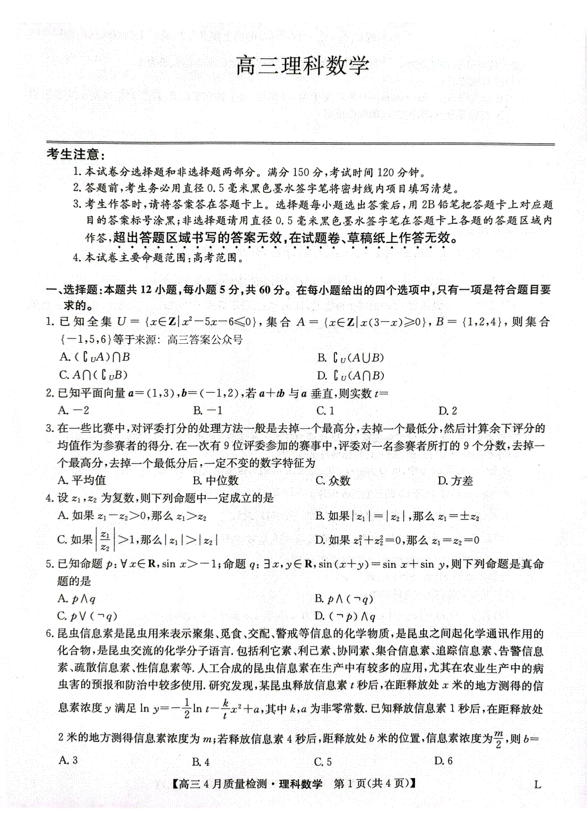 一、2023九师联盟4月老高考理数