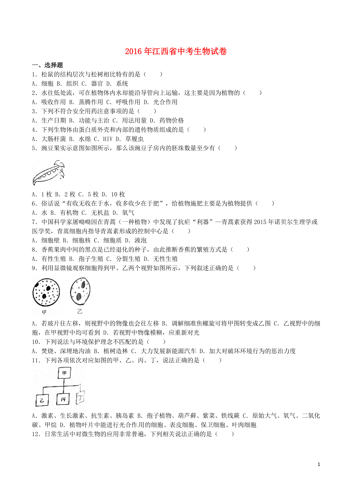 1.江苏省连云港市2016年中考生物真题试题(扫描版,含答案)