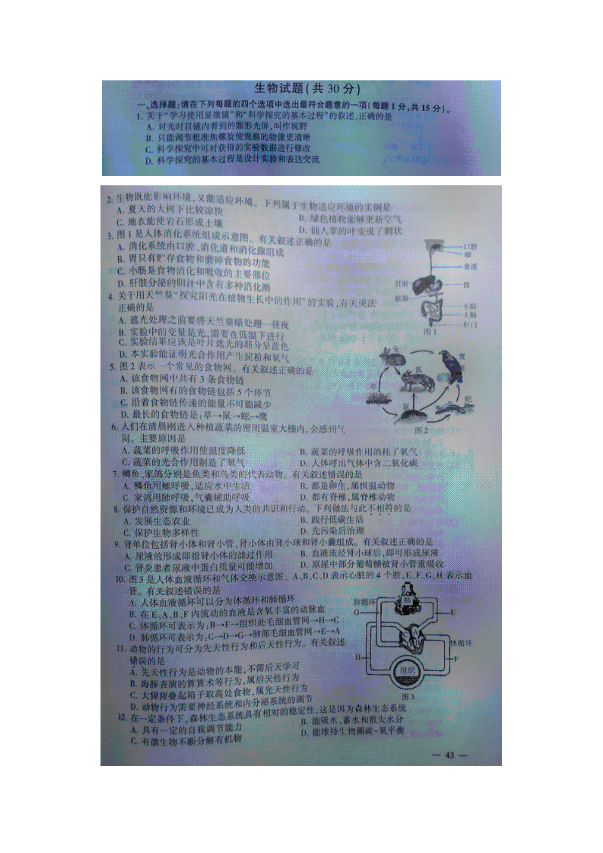 2.江苏省常州市2016年中考生物真题试题(扫描版,含答案)