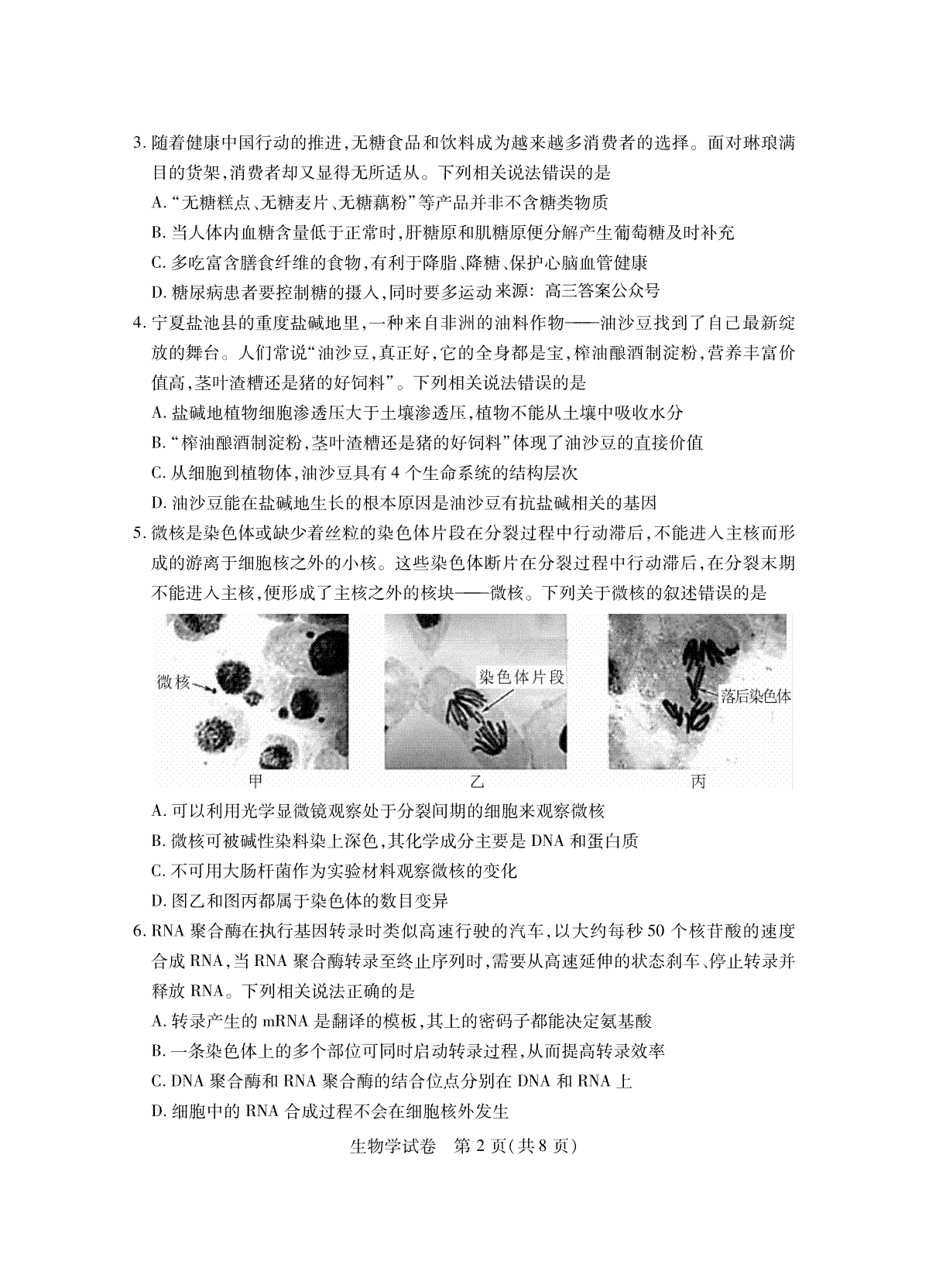 一、2023届第八届湖北省高三4月调研模拟考试生物试题