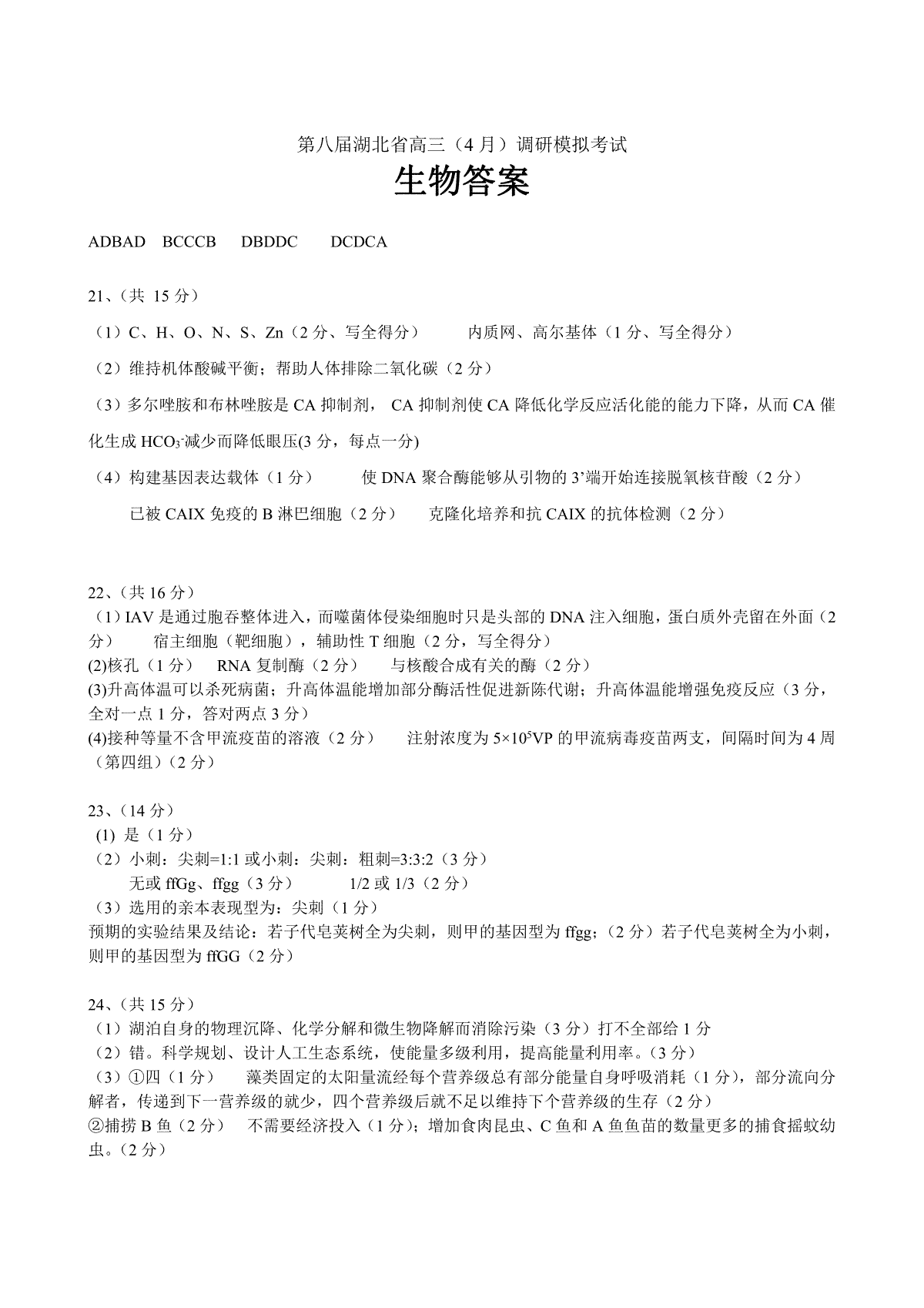 如果你想下载2023届第八届湖北省高三4月调研模拟考试生物试题答案DOC或PDF版,请点击本文末链接!