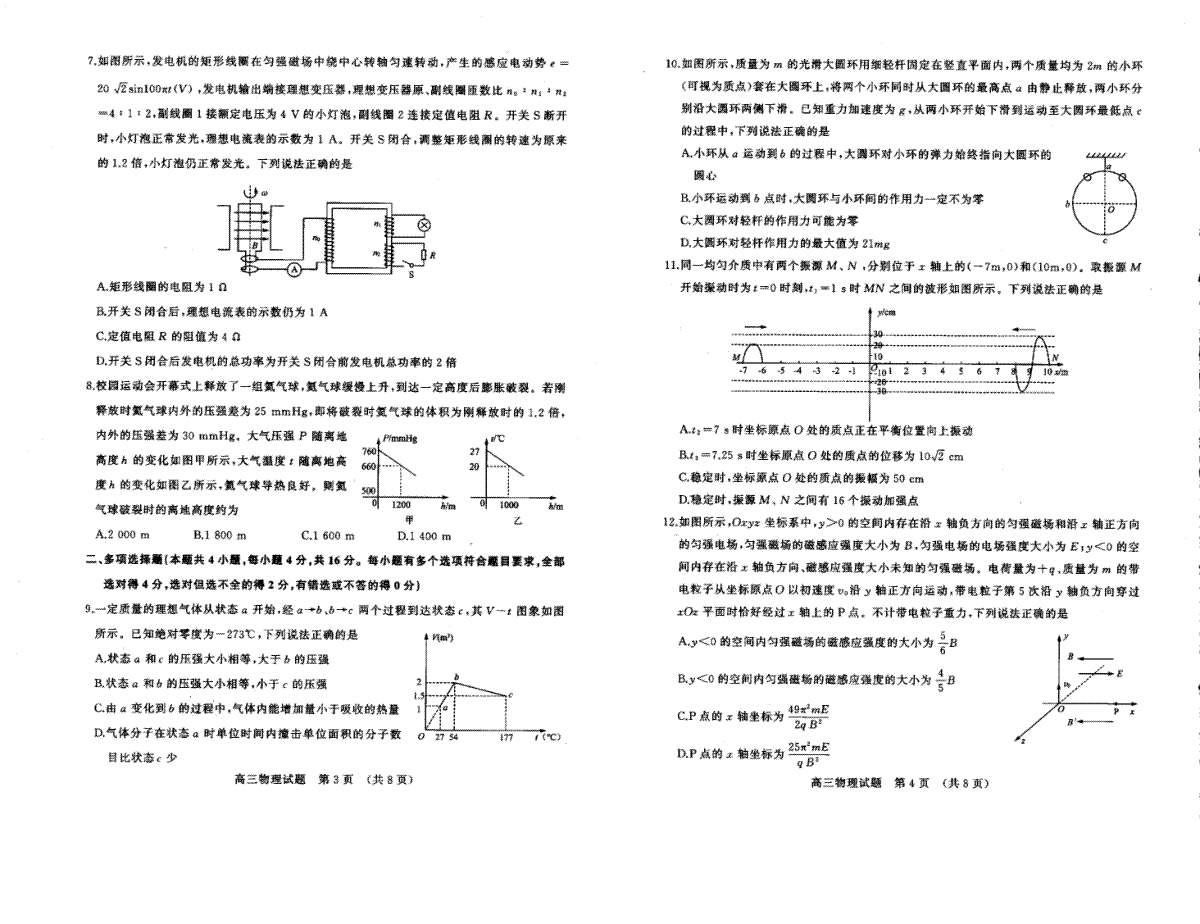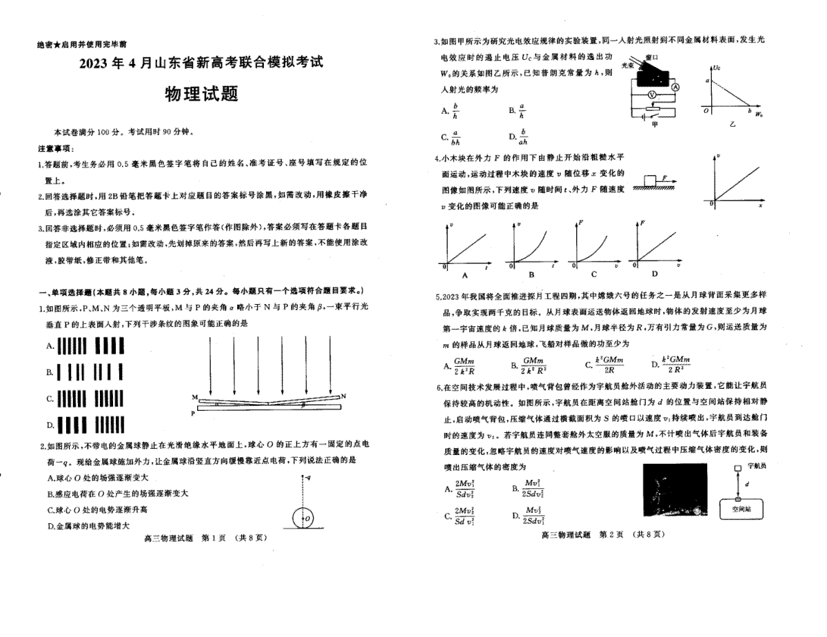 一、山东省济南市2023届高三二模物理试题